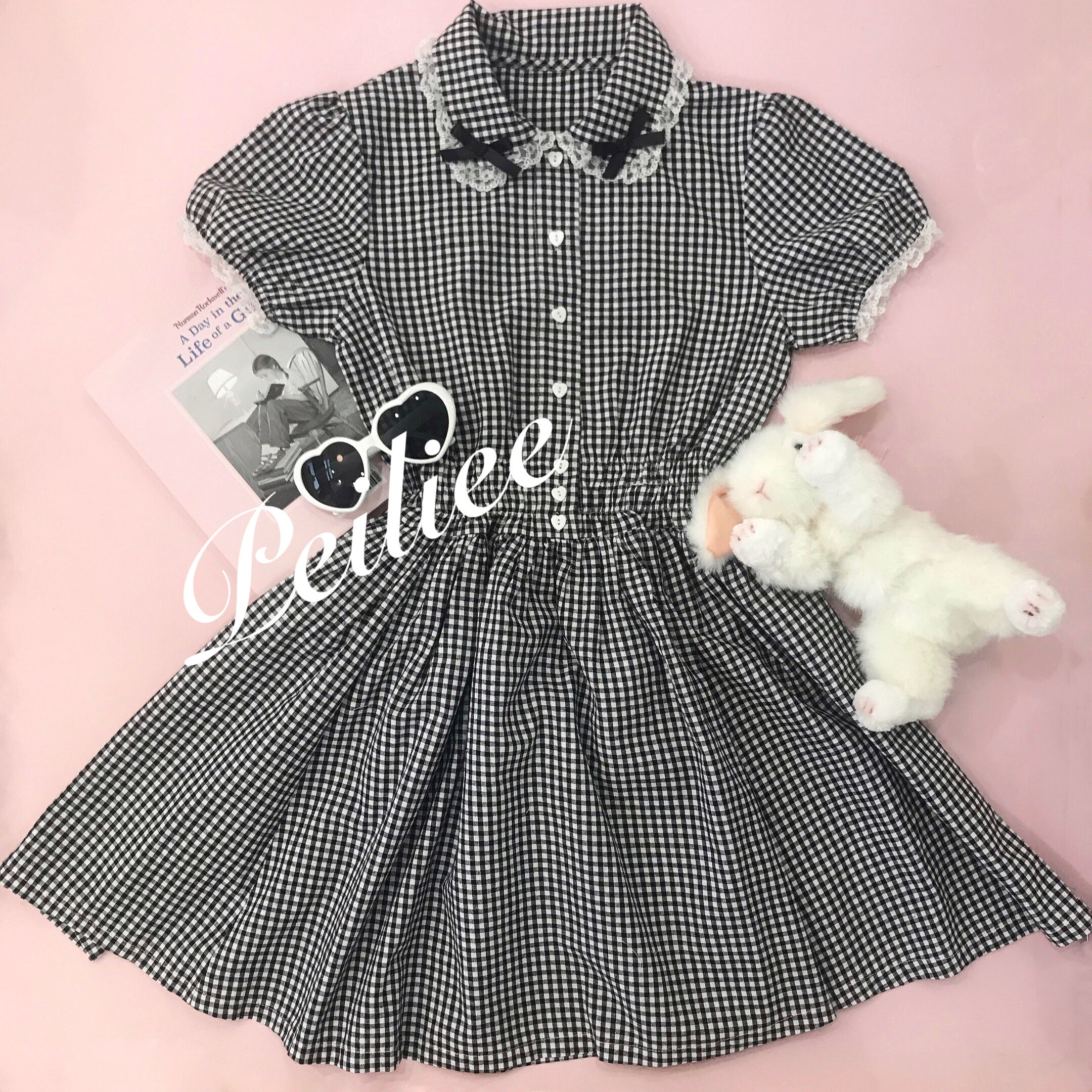 Get trendy with [By Peiliee] Afternoon Tea At Tiffany Gingham Babydoll Mini Dress Lolita 1997 style -  available at Peiliee Shop. Grab yours for $49.90 today!