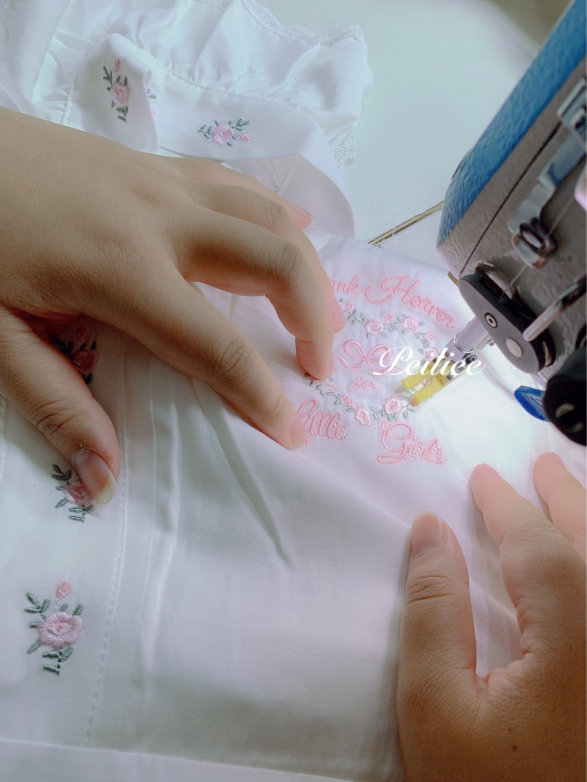 サマー・ジョイの友人は子供服ブランドを経営しています。ある日、サマー・ジョイが友人を訪ねた際、友人は「Thank heaven for little girls(小さな女の子に感謝)」という柄があしらわれた新生児用ベビードレスの新デザインを見せてくれました。彼女はこの言葉がとても天使のようだと感じ、この天使柄のコットンドレスを、子供サイズより大きいサイズ(子供サイズより大きめ)で再現したいと申し出ました。