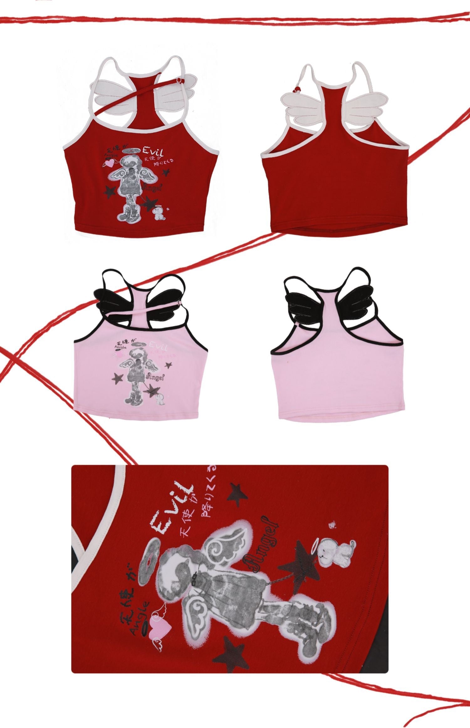 Get trendy with [Evil tooth] Angel besties wing crop top - Shirts & Tops available at Peiliee Shop. Grab yours for $39.90 today!