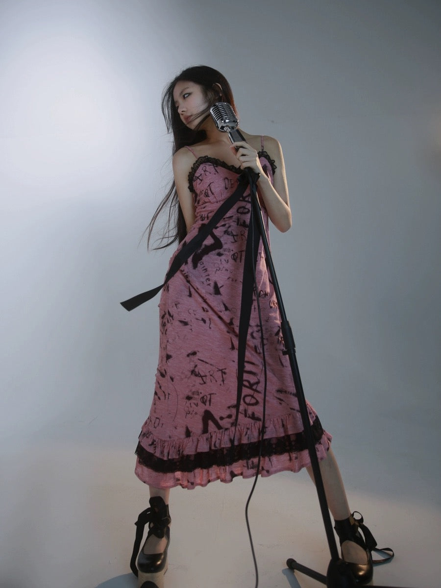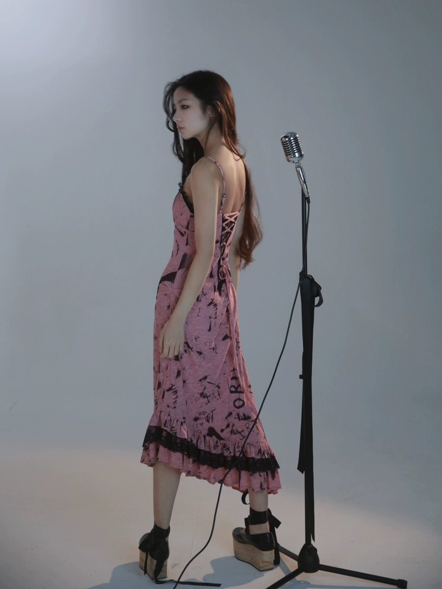 [邪悪な歯] パンクローズマーメイドテールデザインミディドレス