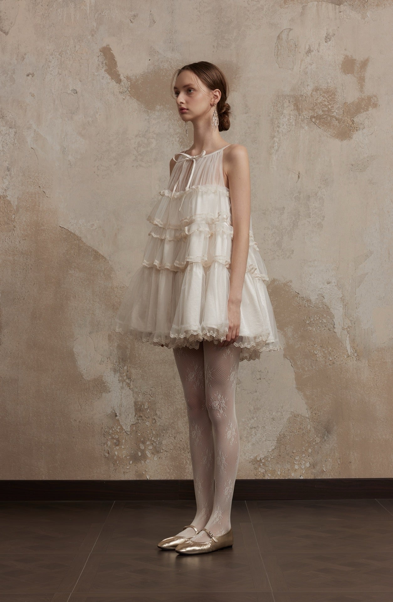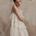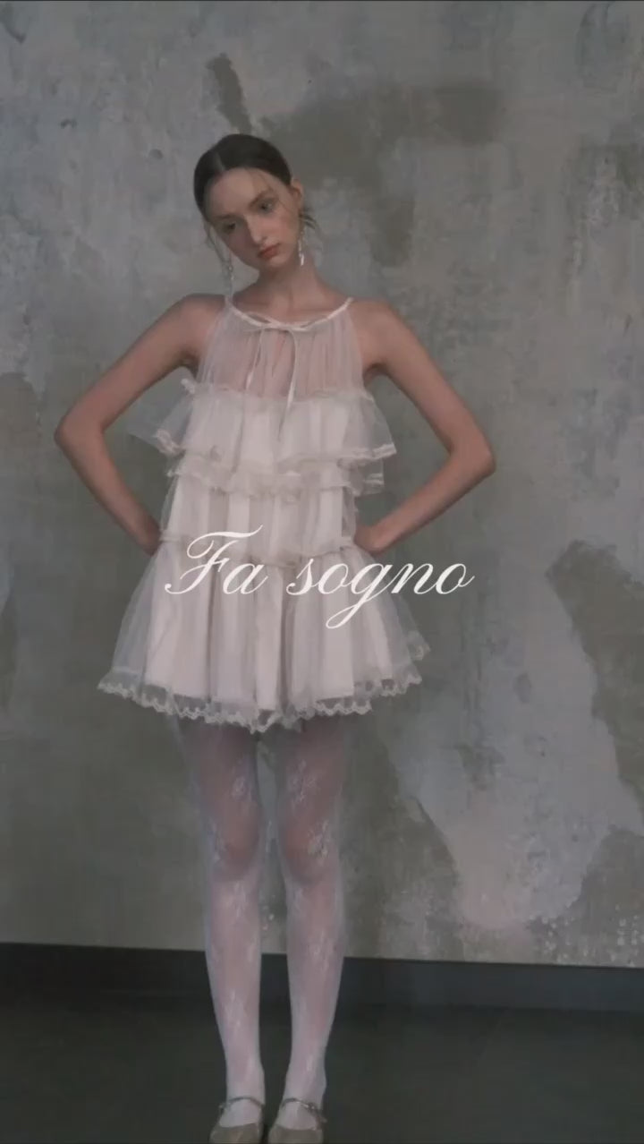 Fa Sogno ホワイト メロディー ドゥ チュール ベレット ラッフル ドレス