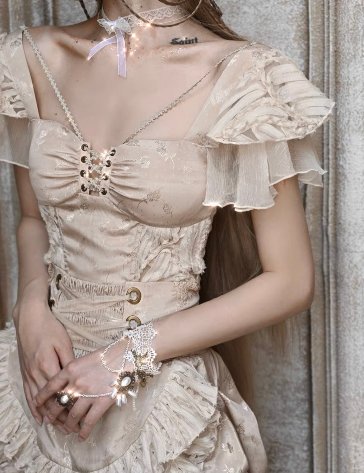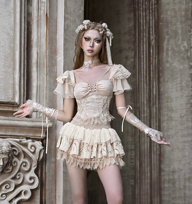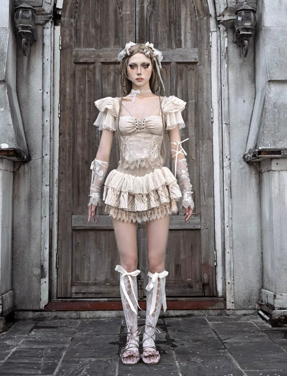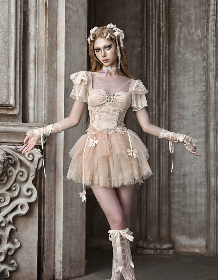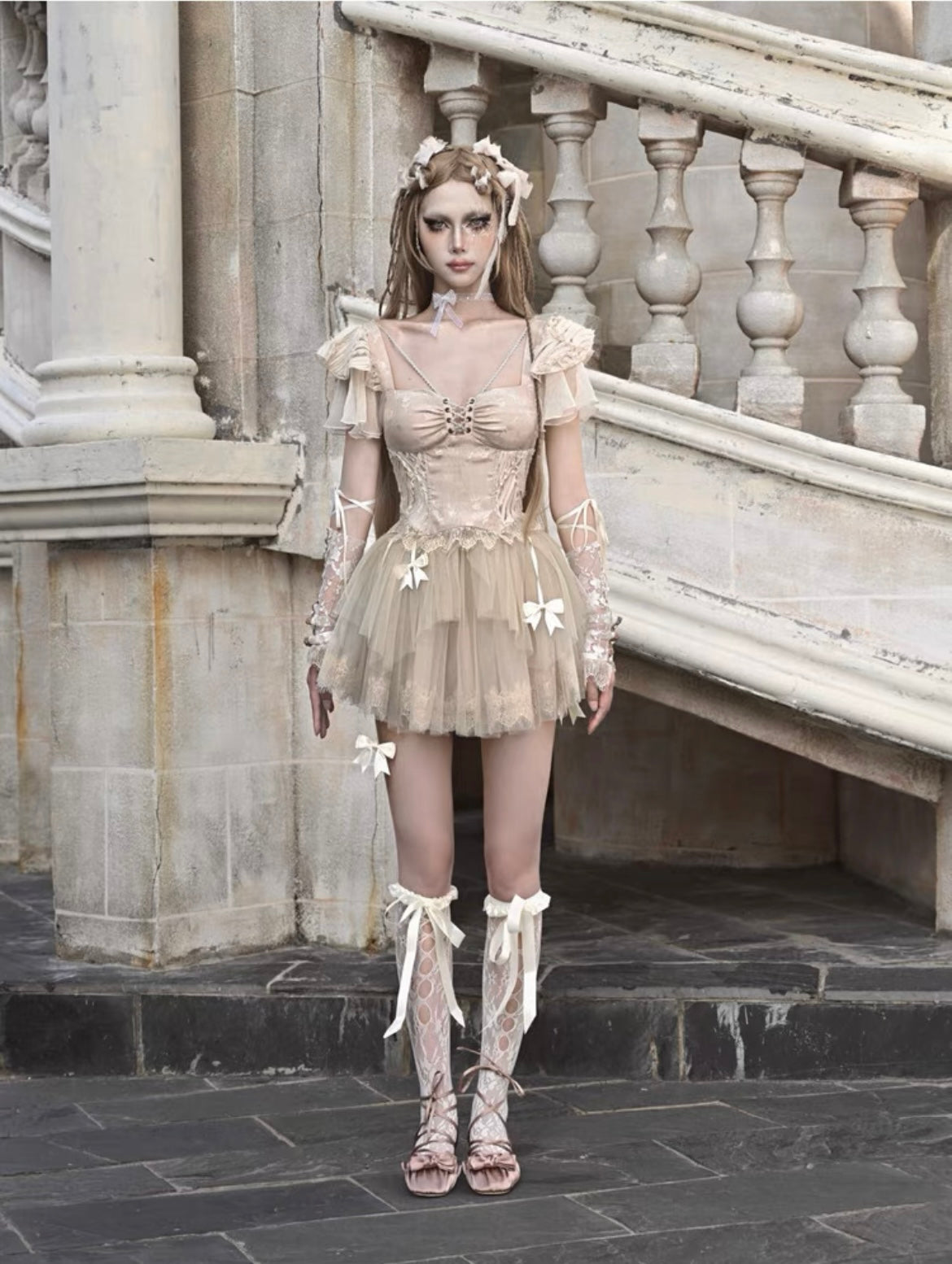 このブラッドサプライのセットには、クラッシュ加工のバレエスカート、花を結んだ宮廷風ロココ調のフライングスリーブ、そしてフィッシュボーンが含まれています。すべてのパーツは、完璧なフィット感とクラシックなスタイルを実現するために丁寧にデザインされています。
