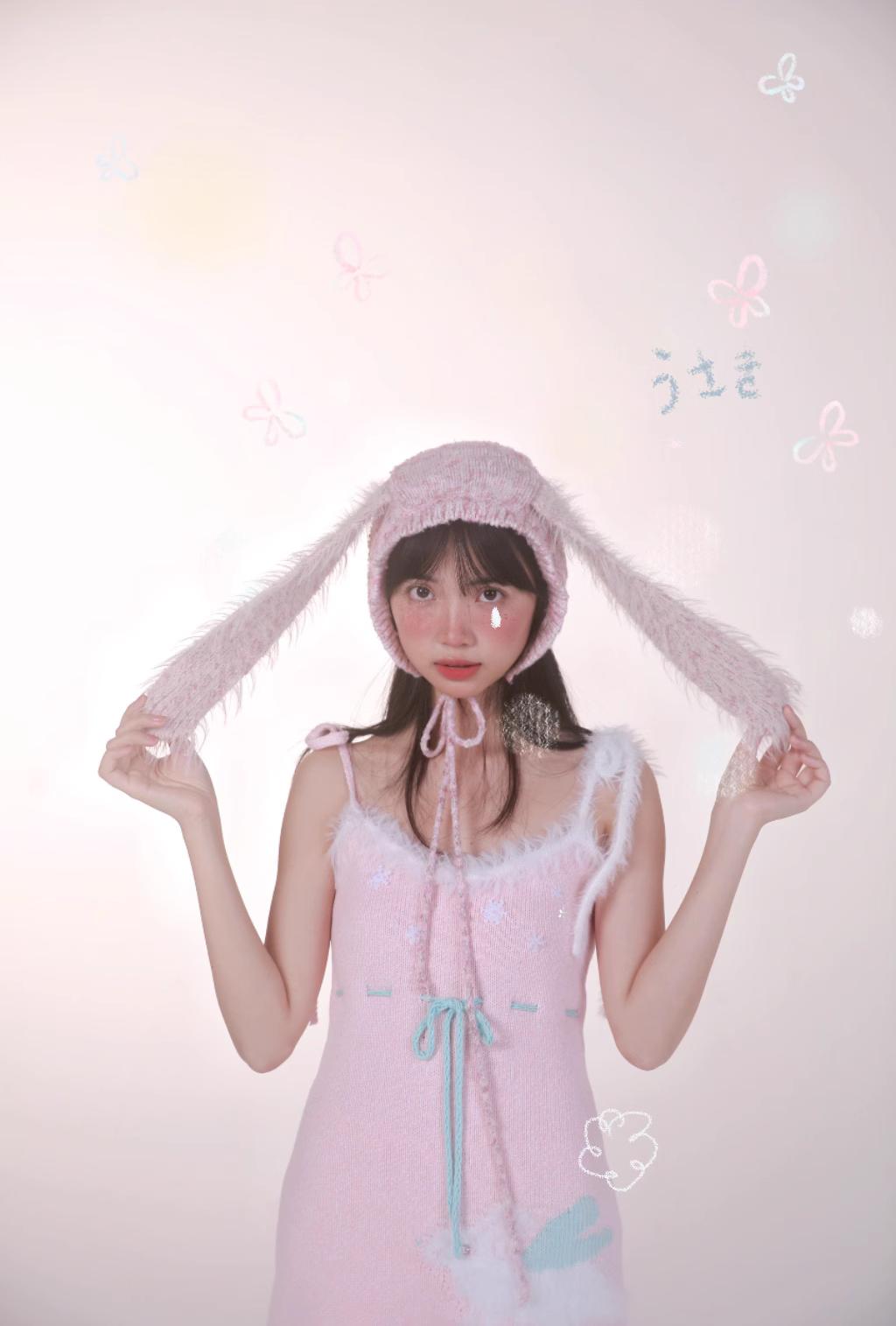 [ローズアイランド] ピーチバニーロング耳ニットヘッドバンド