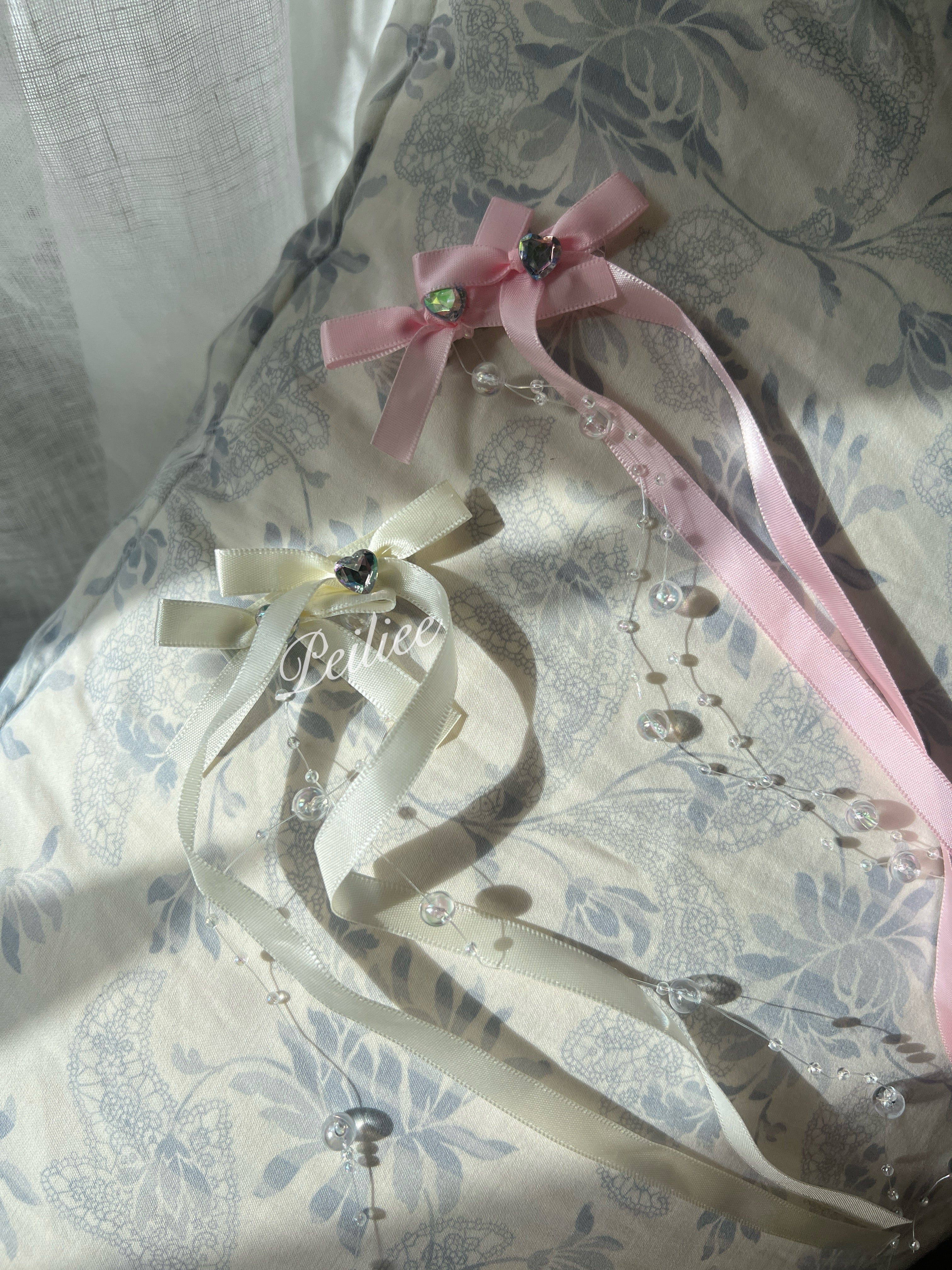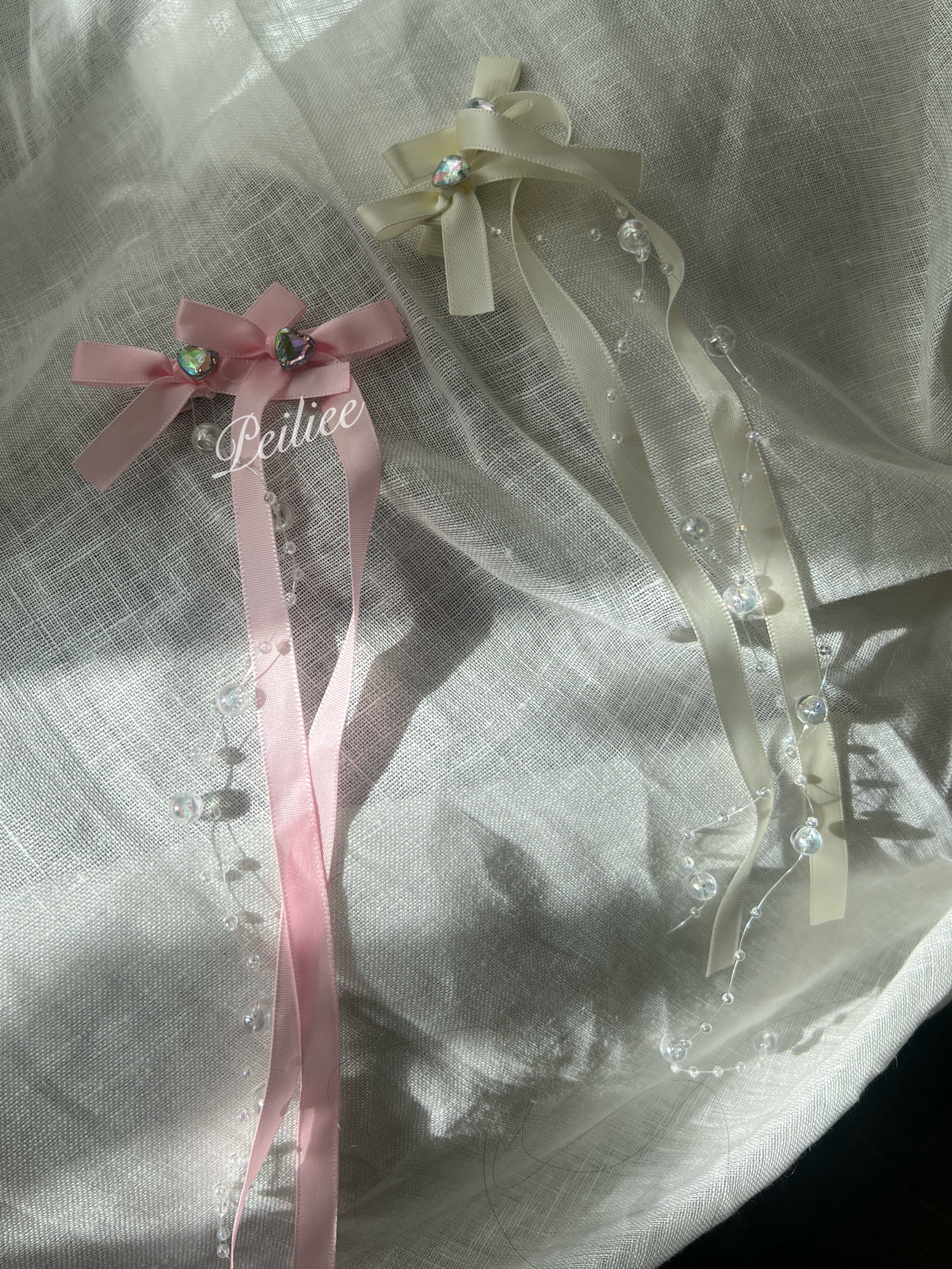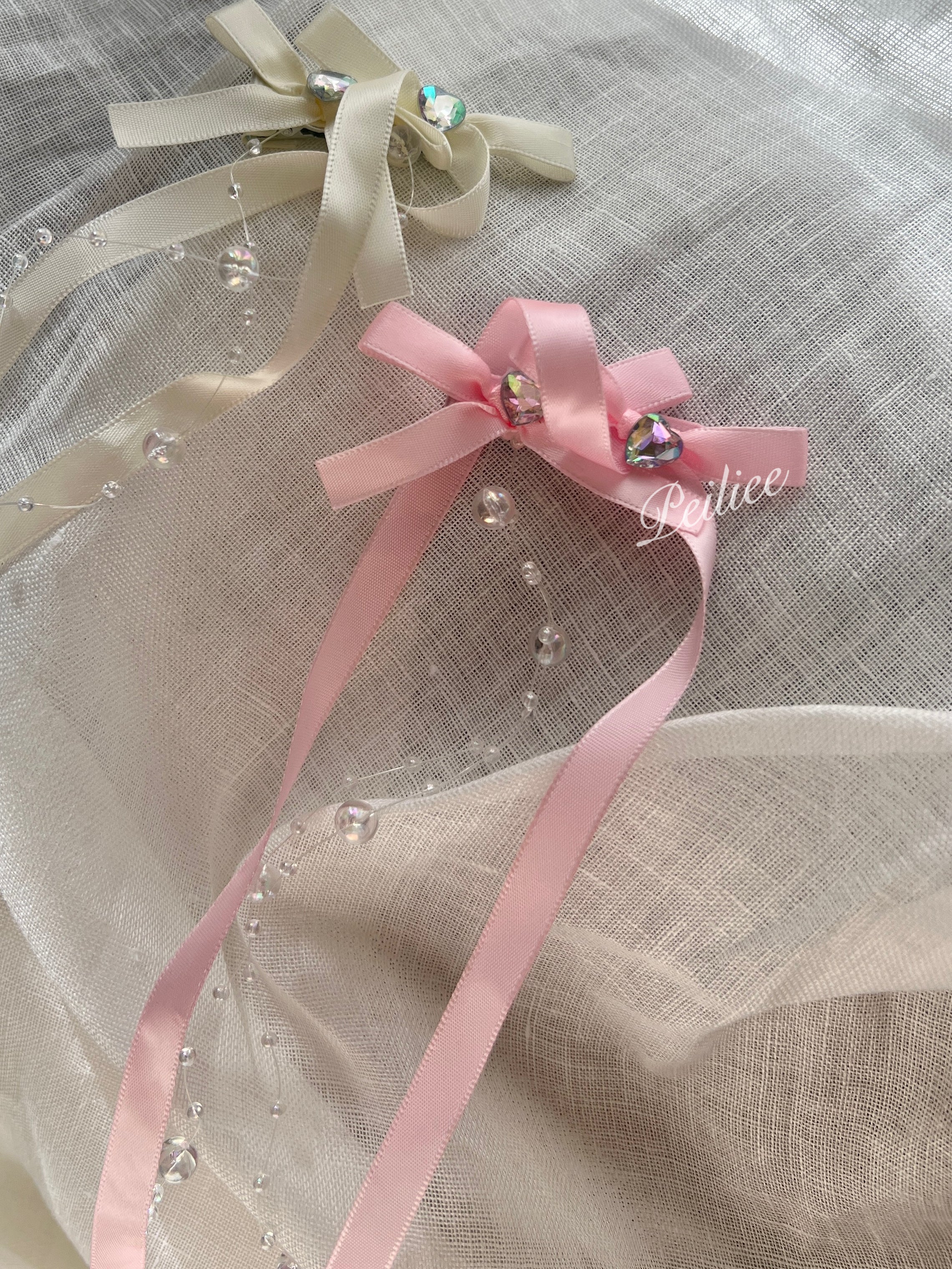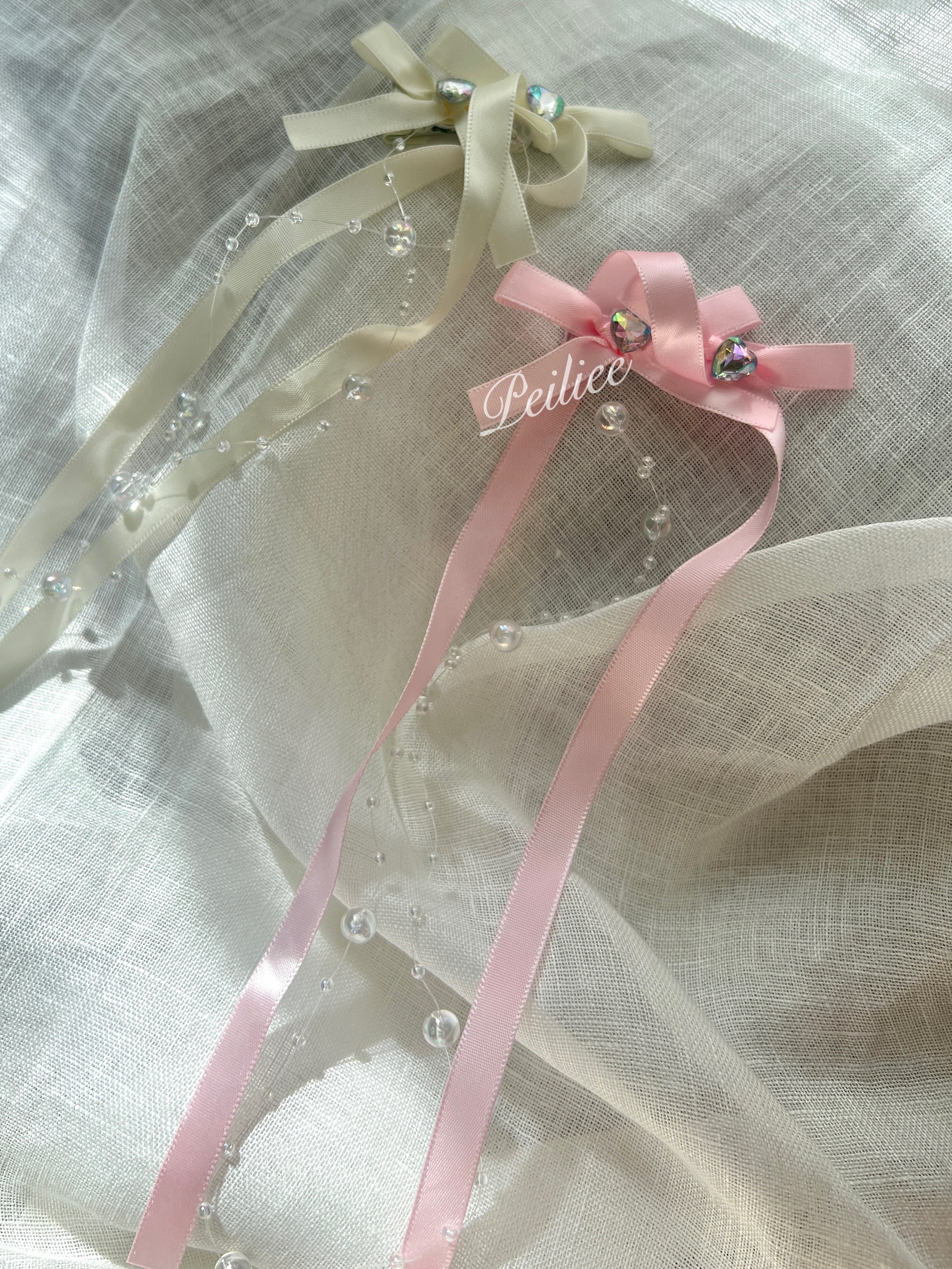「雨粒」の模様が入った素敵なリボンのヘアピン