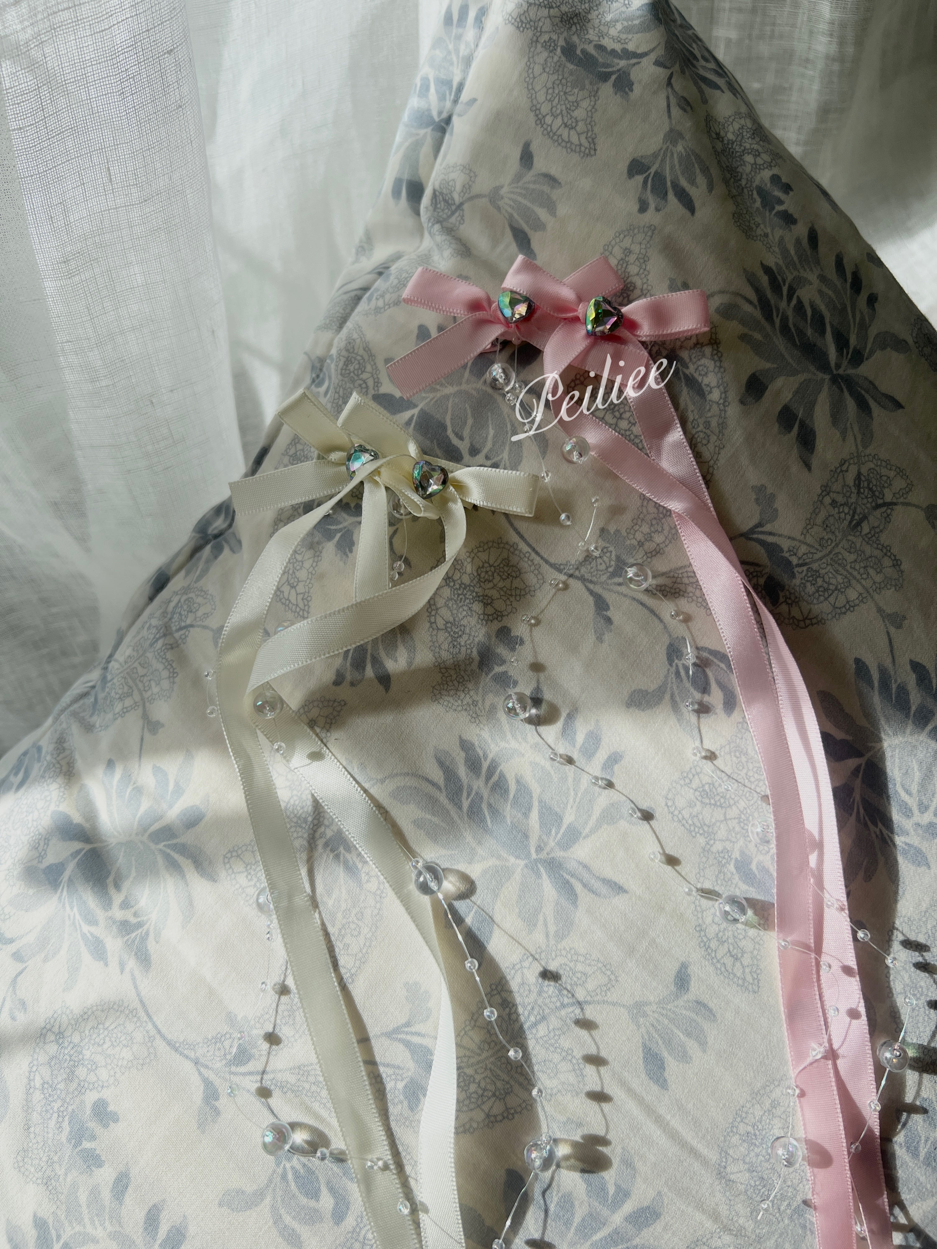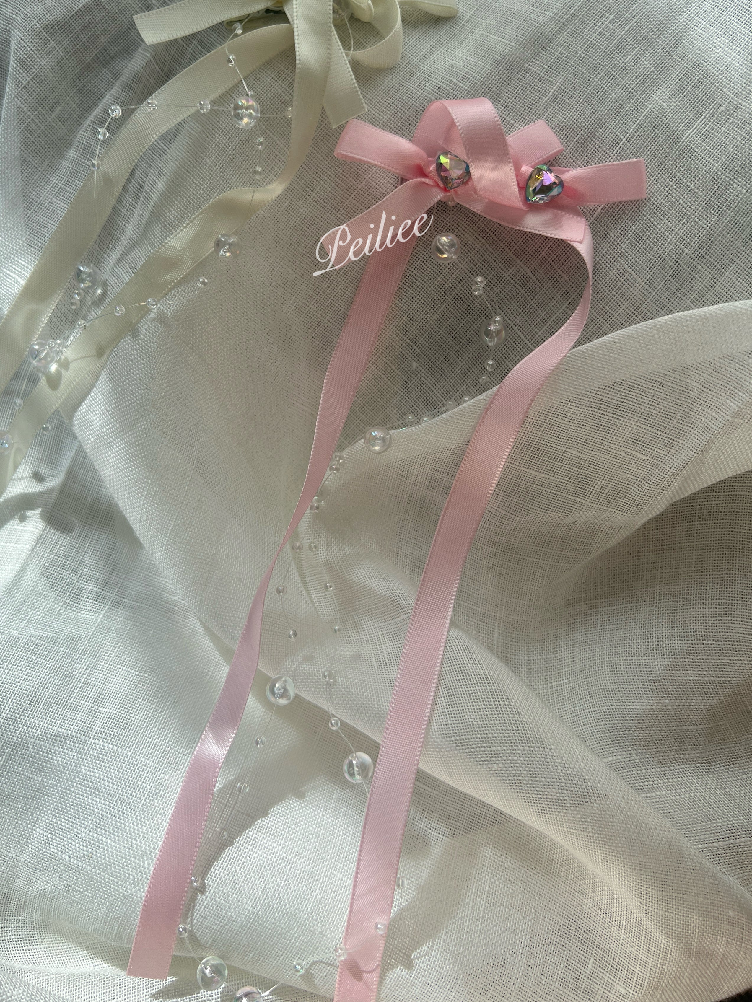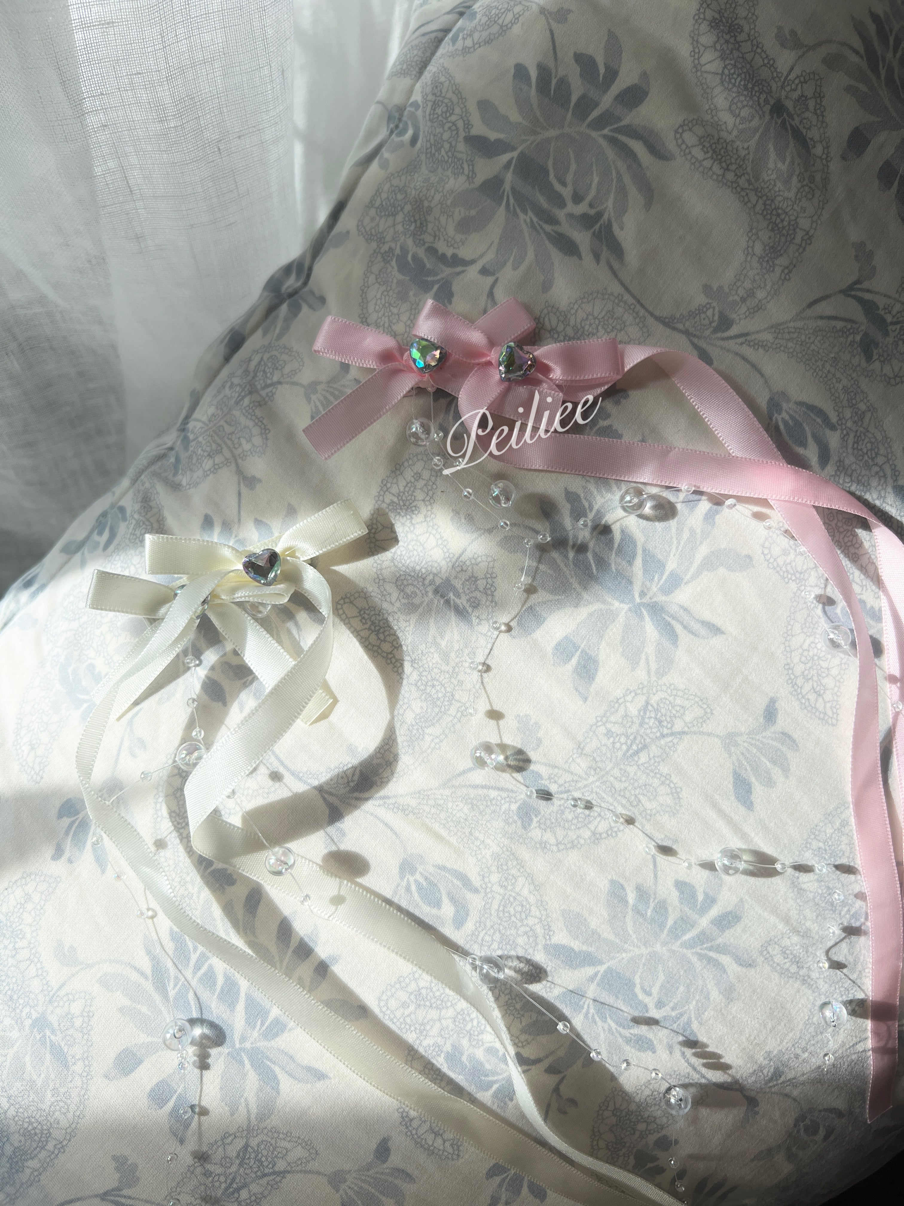 「雨粒」の模様が入った素敵なリボンのヘアピン