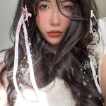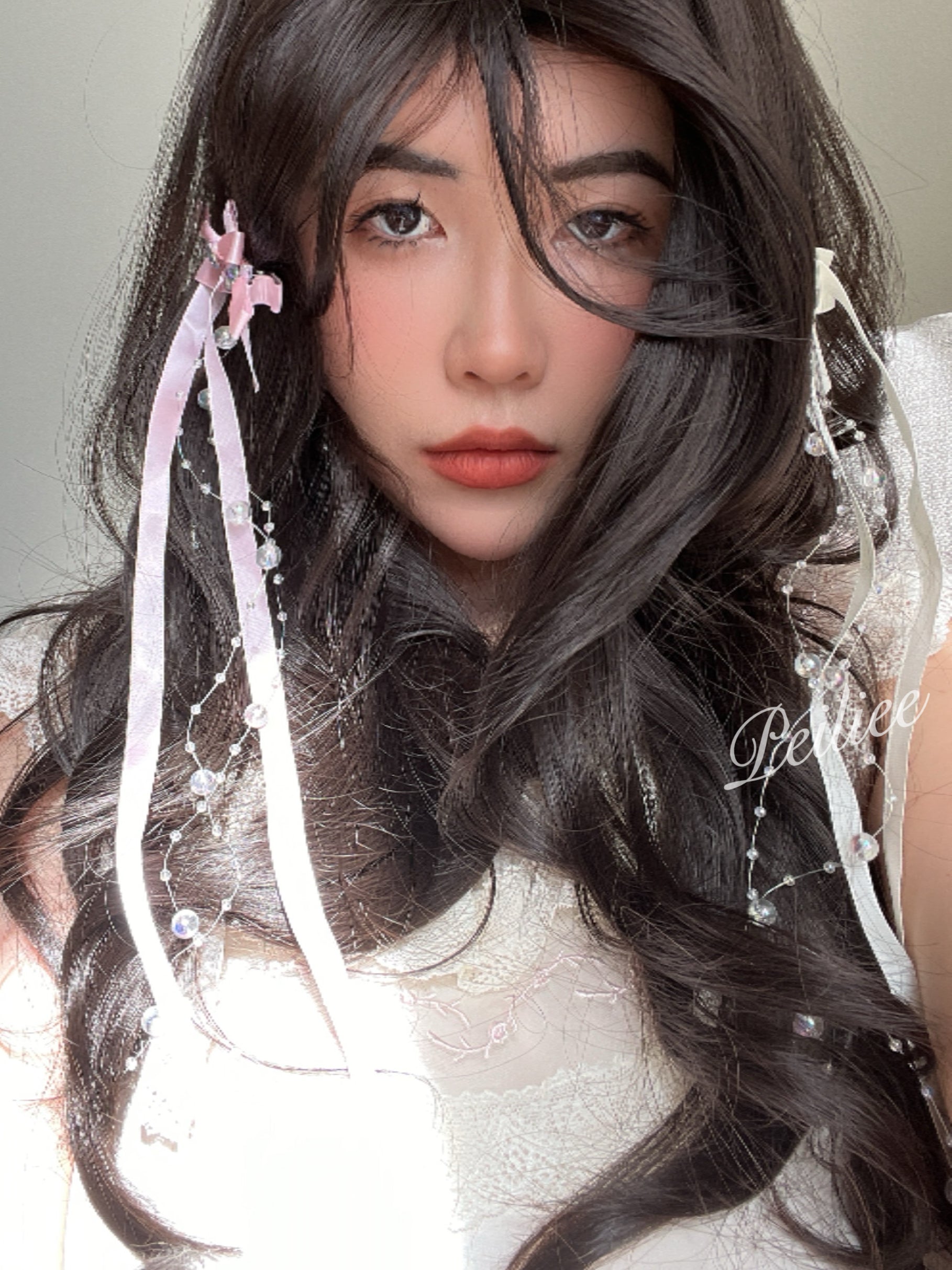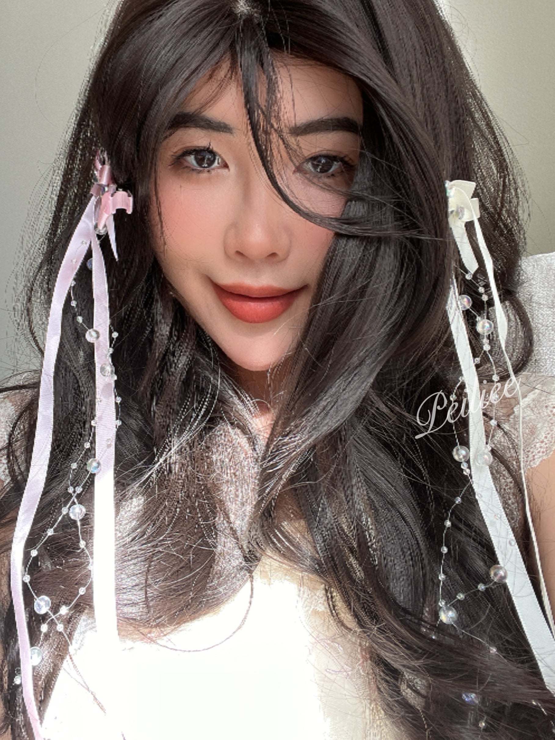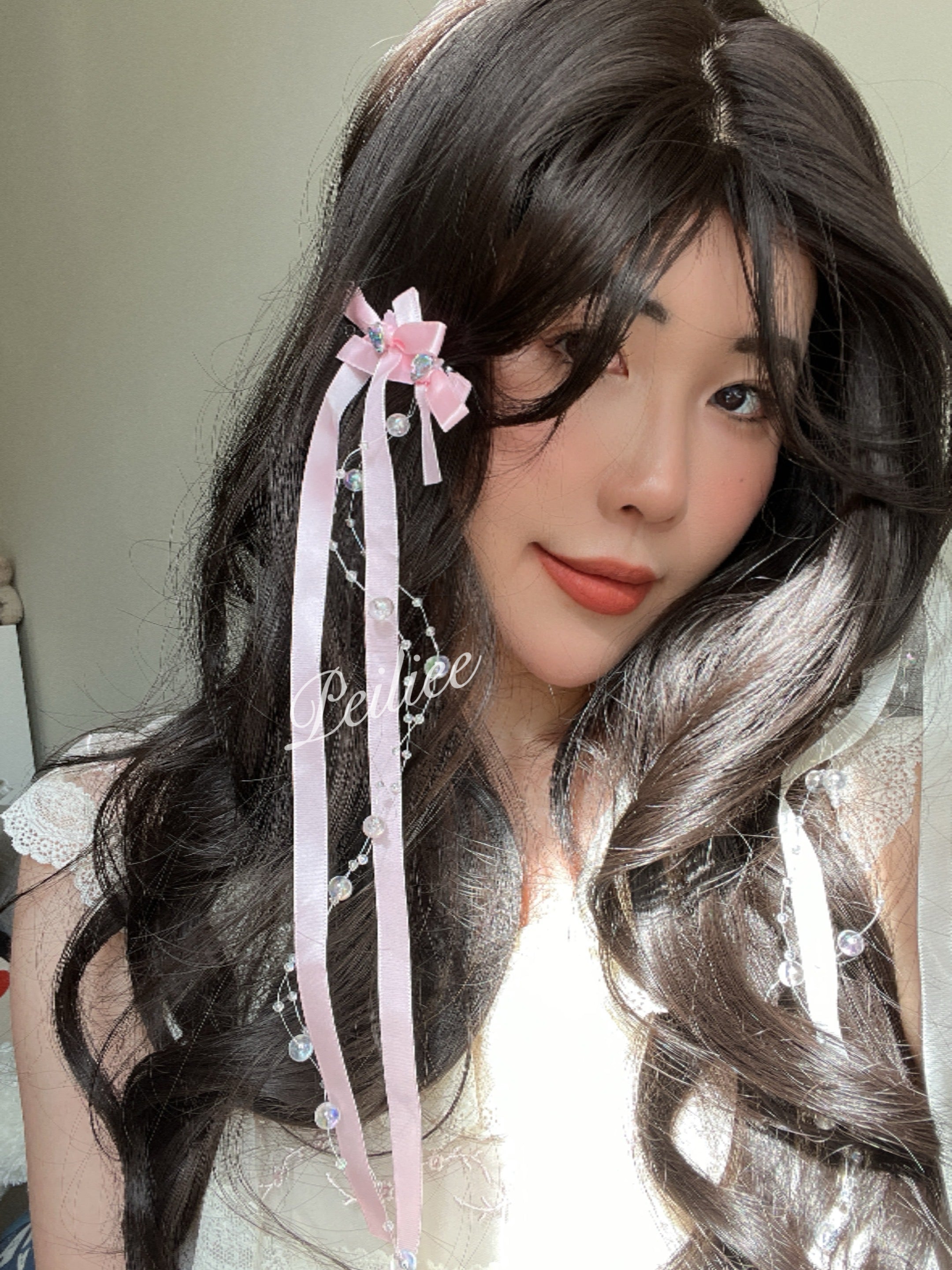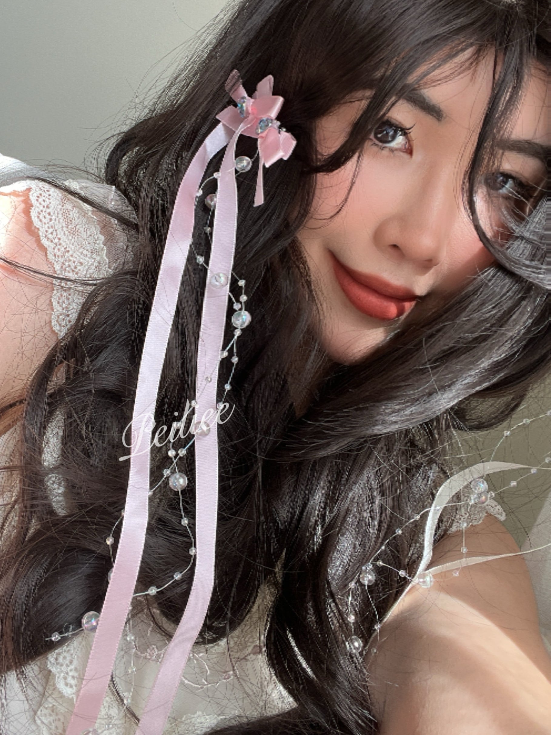 「雨粒」の模様が入った素敵なリボンのヘアピン