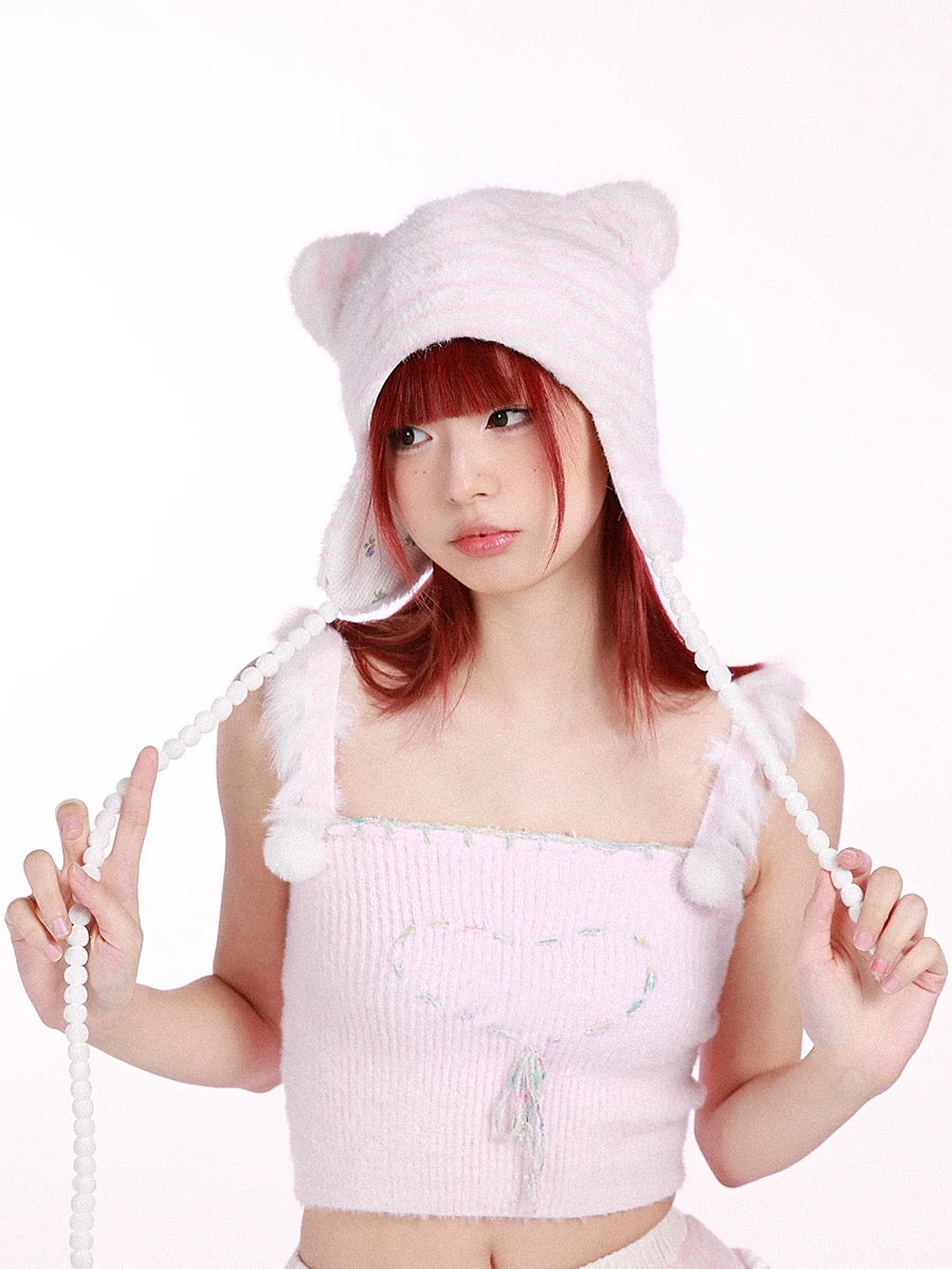 [Rose Island] Pink Bear Ear Soft Hat