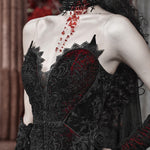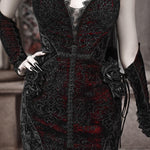 • 雰囲気: 赤と黒の印象的なコントラストが、ダークで洗練された魅力を醸し出すこのドレスは、イブニングウェア、テーマのあるイベント、ゴシック ドラマの雰囲気が求められる機会に最適です。