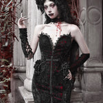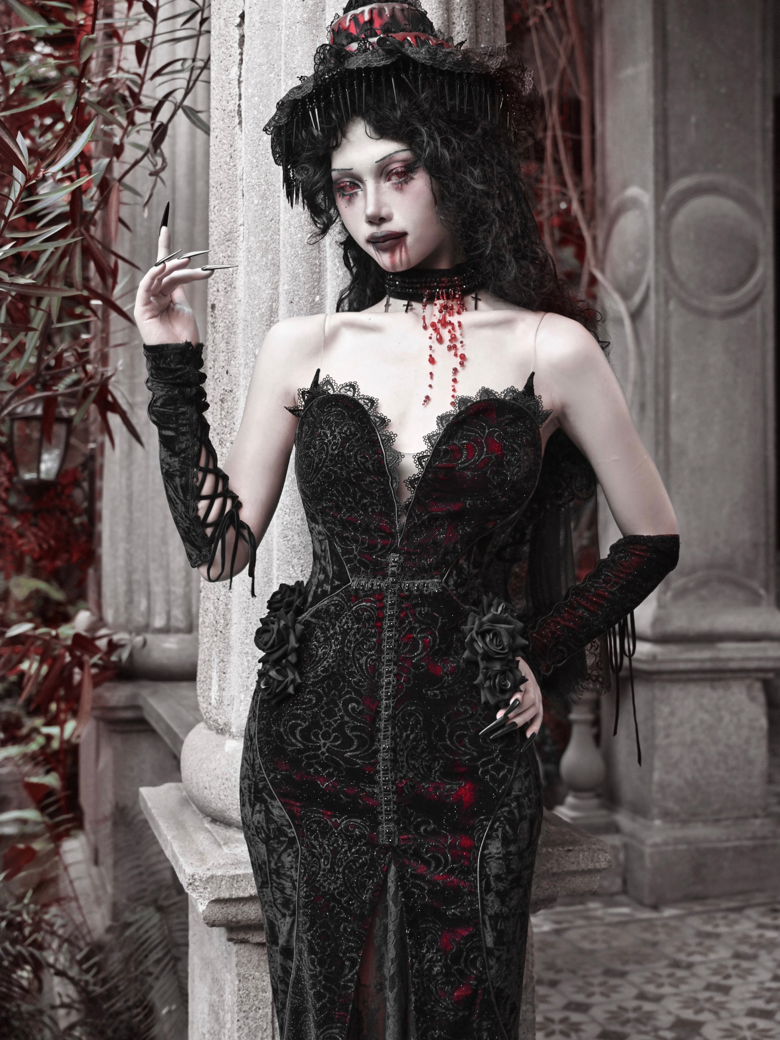 この体にフィットするキャミドレスは、ゴシックの美学と優雅さと官能性を融合し、魅惑的な吸血鬼の魅力を体現しています。
