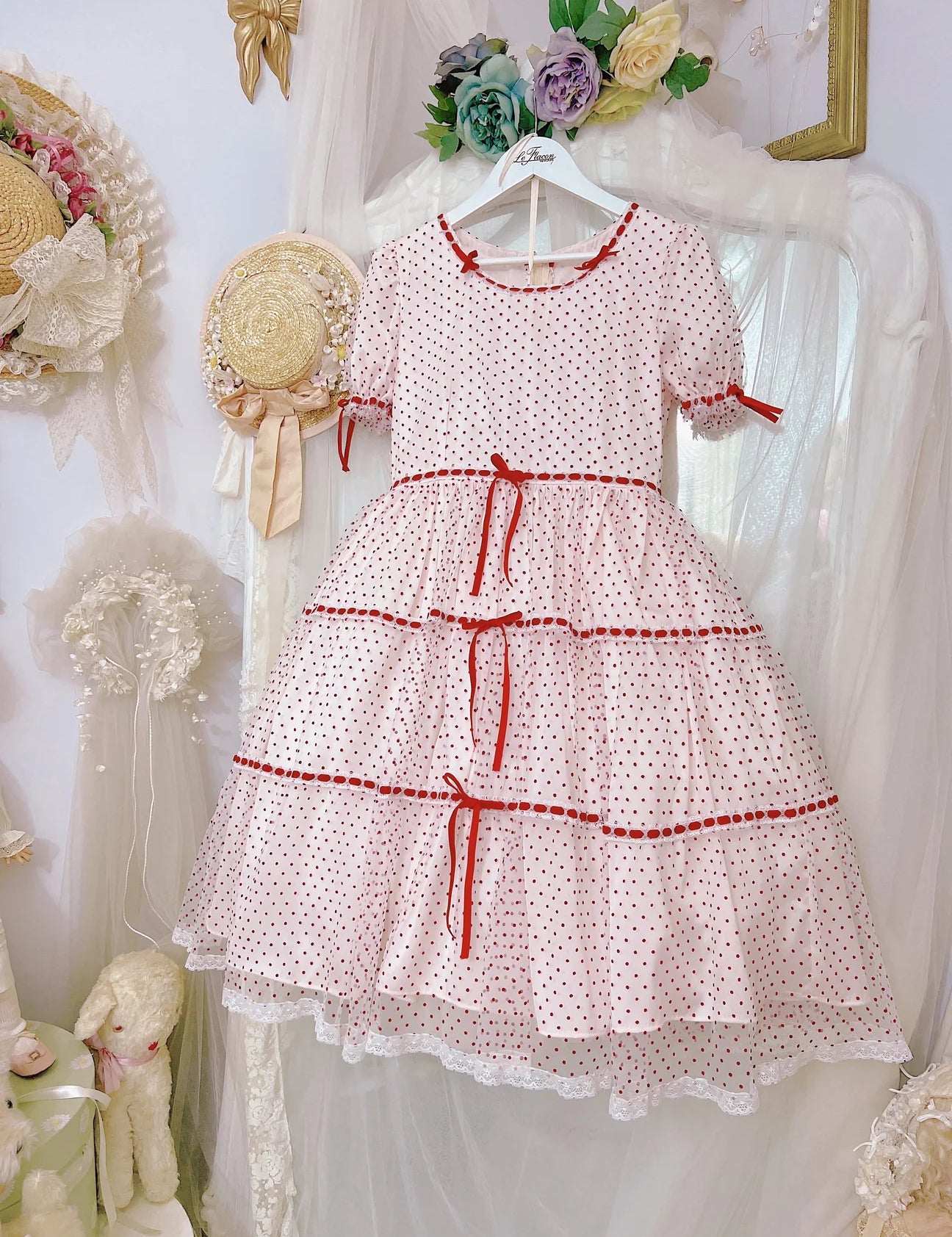 [ルフラコン]「サマーラバーズ」ヴィンテージ風レッドドットワンピース