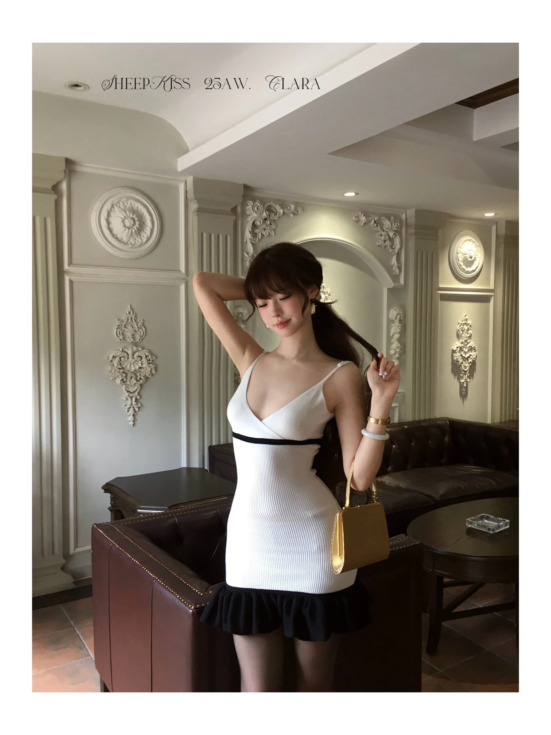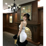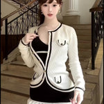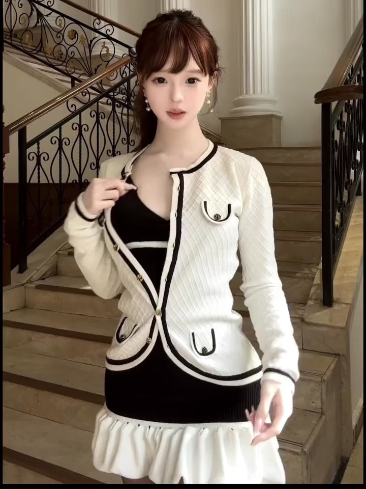 A timeless knit dress designed with refined contrasts and elegant charm. Featuring a structured V neckline and softly flared hemline, the Clara dress embodies both sophistication and youthful grace. The black-and-white palette creates a classic balance, making it perfect for festive gatherings, seasonal parties, and elegant evenings.