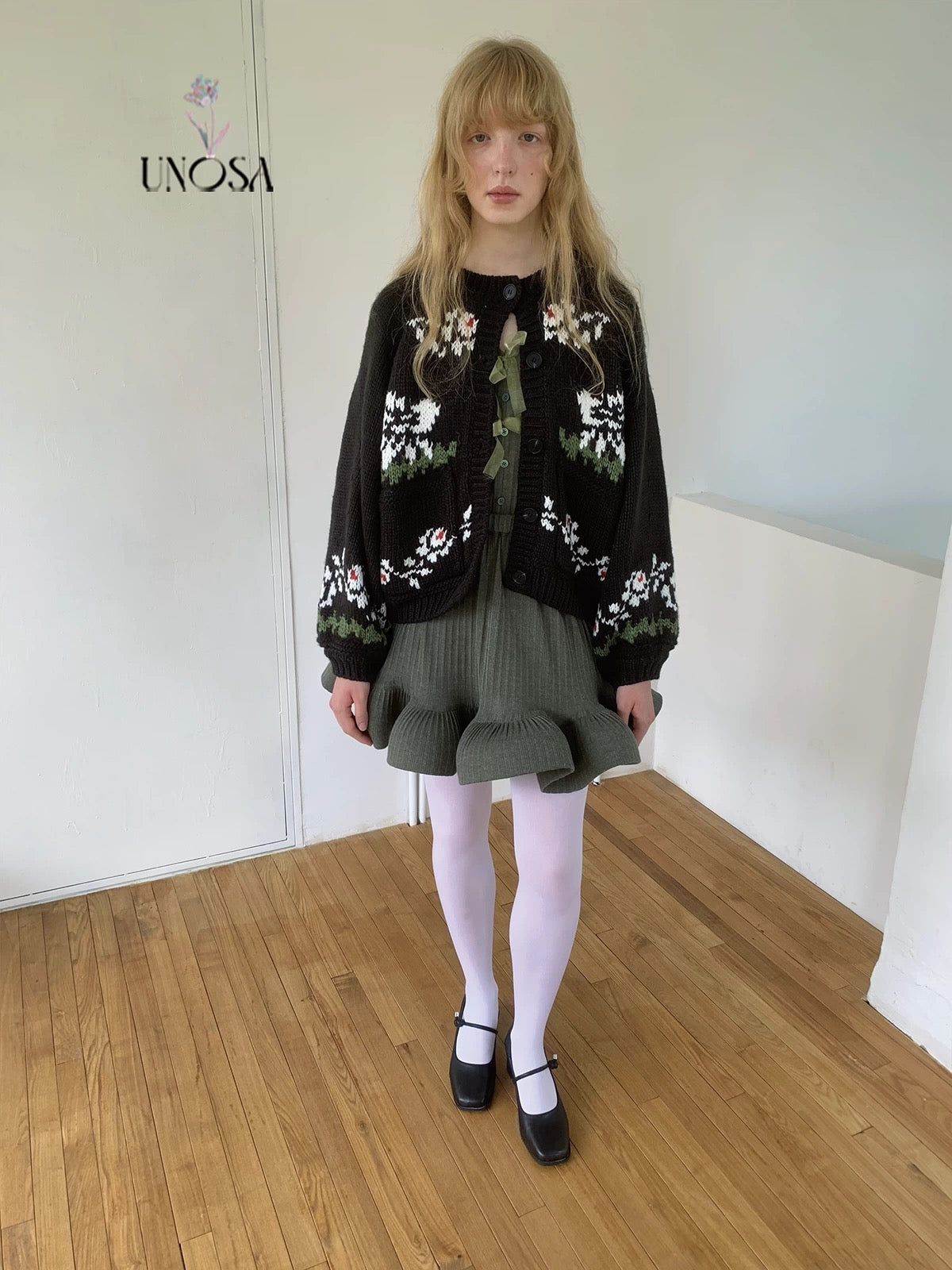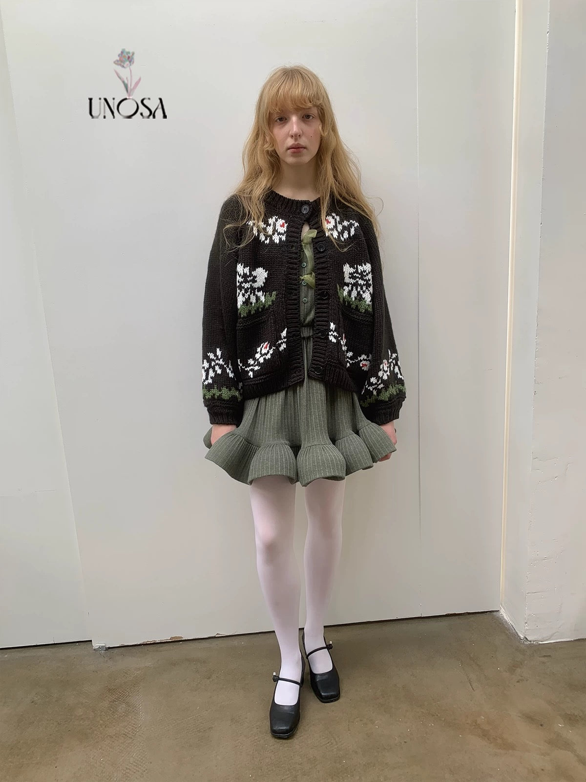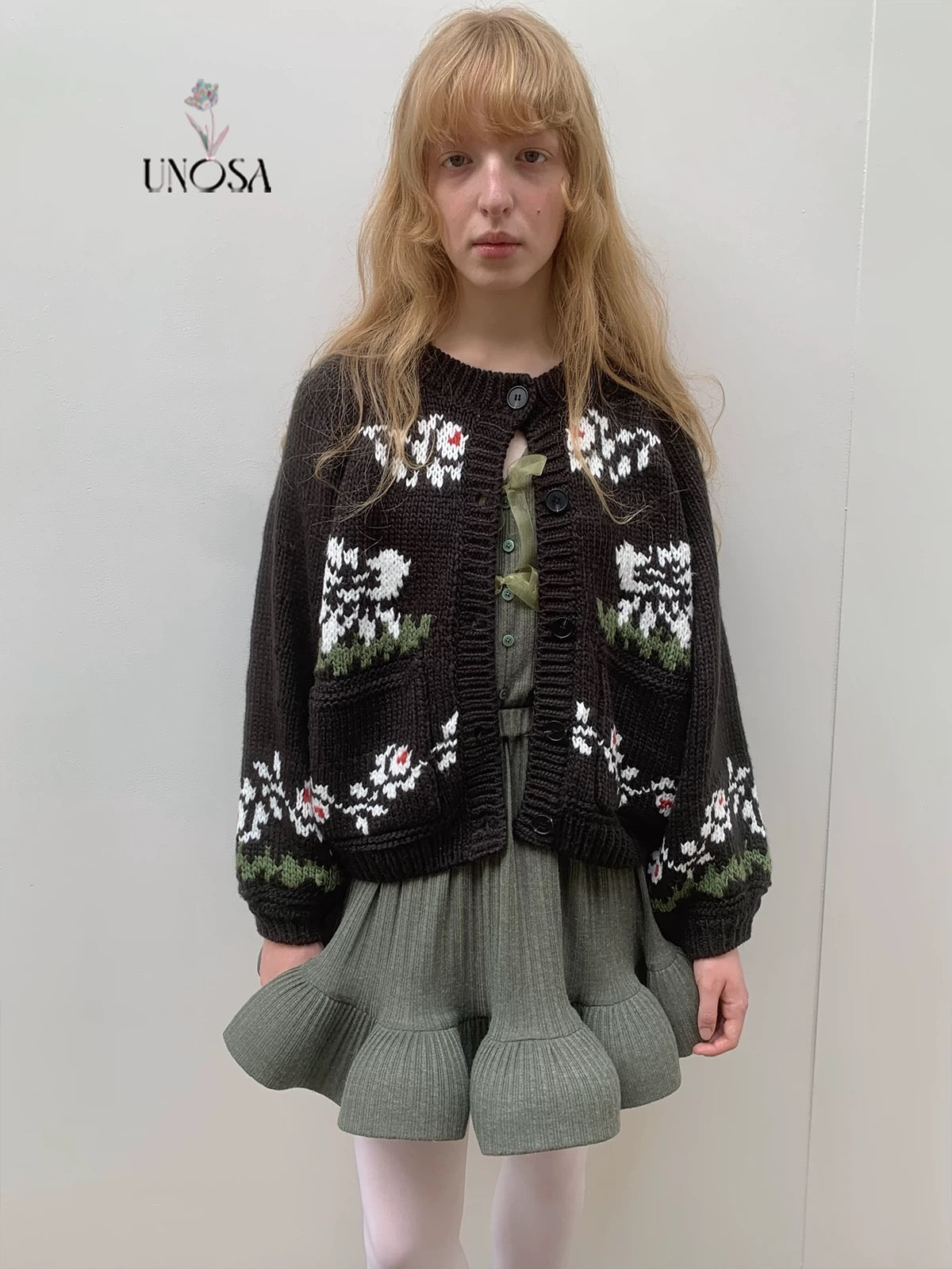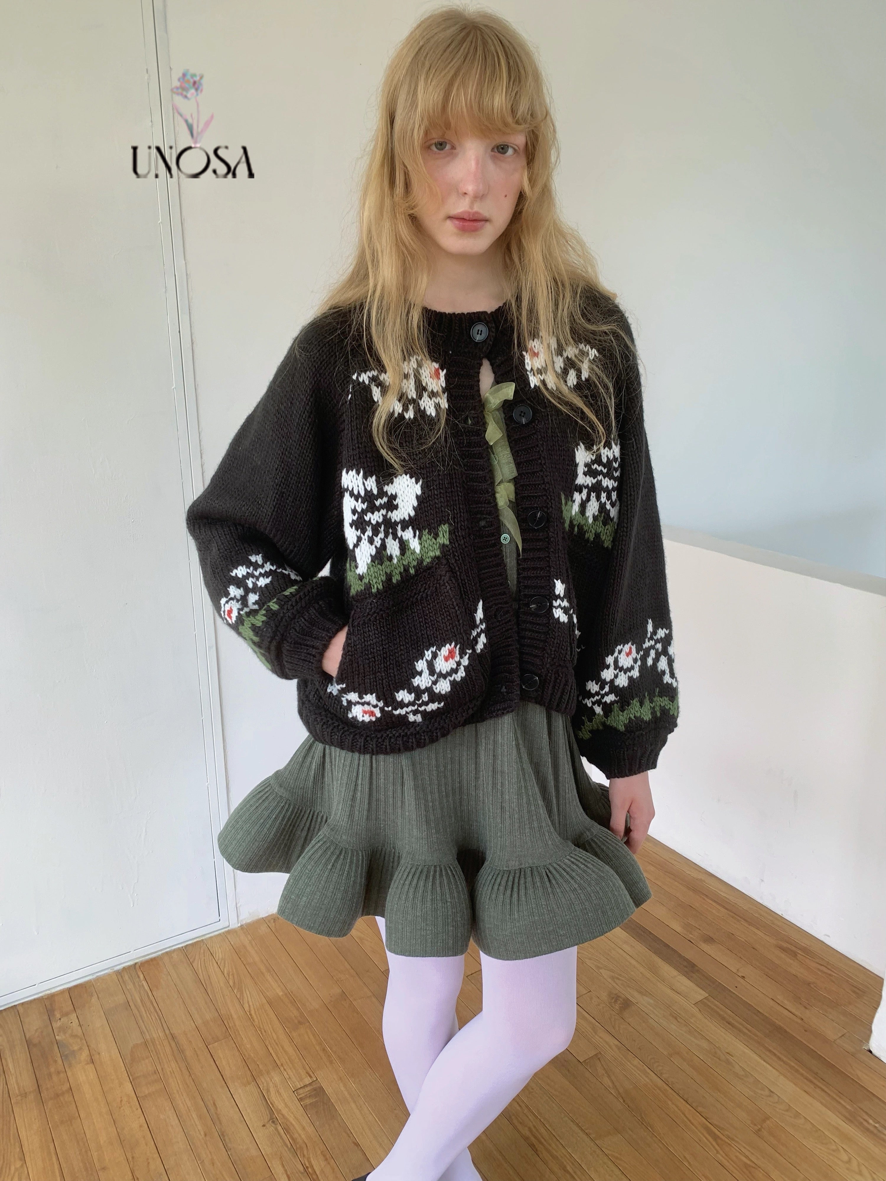 UNOSA Winter Meadow Floral Knitting Cardigan