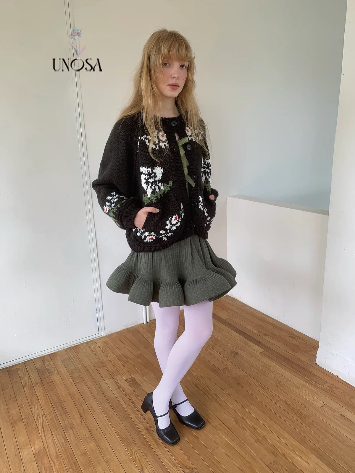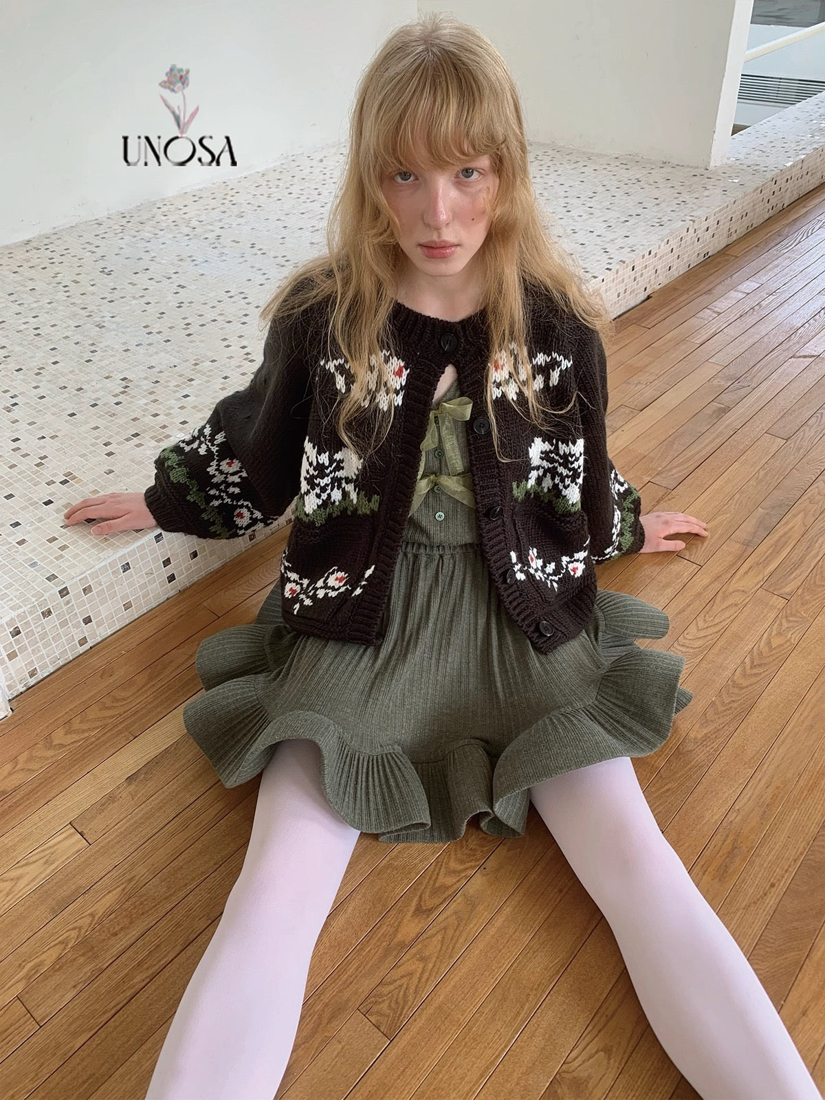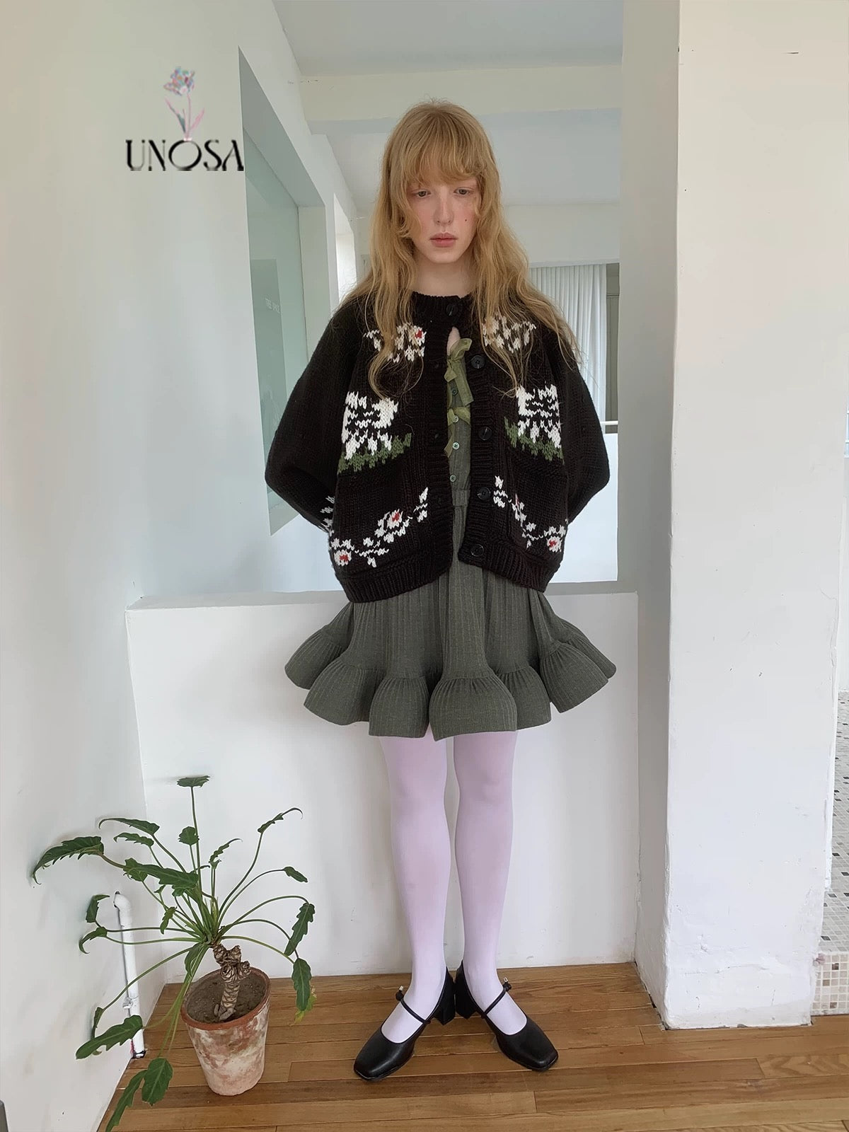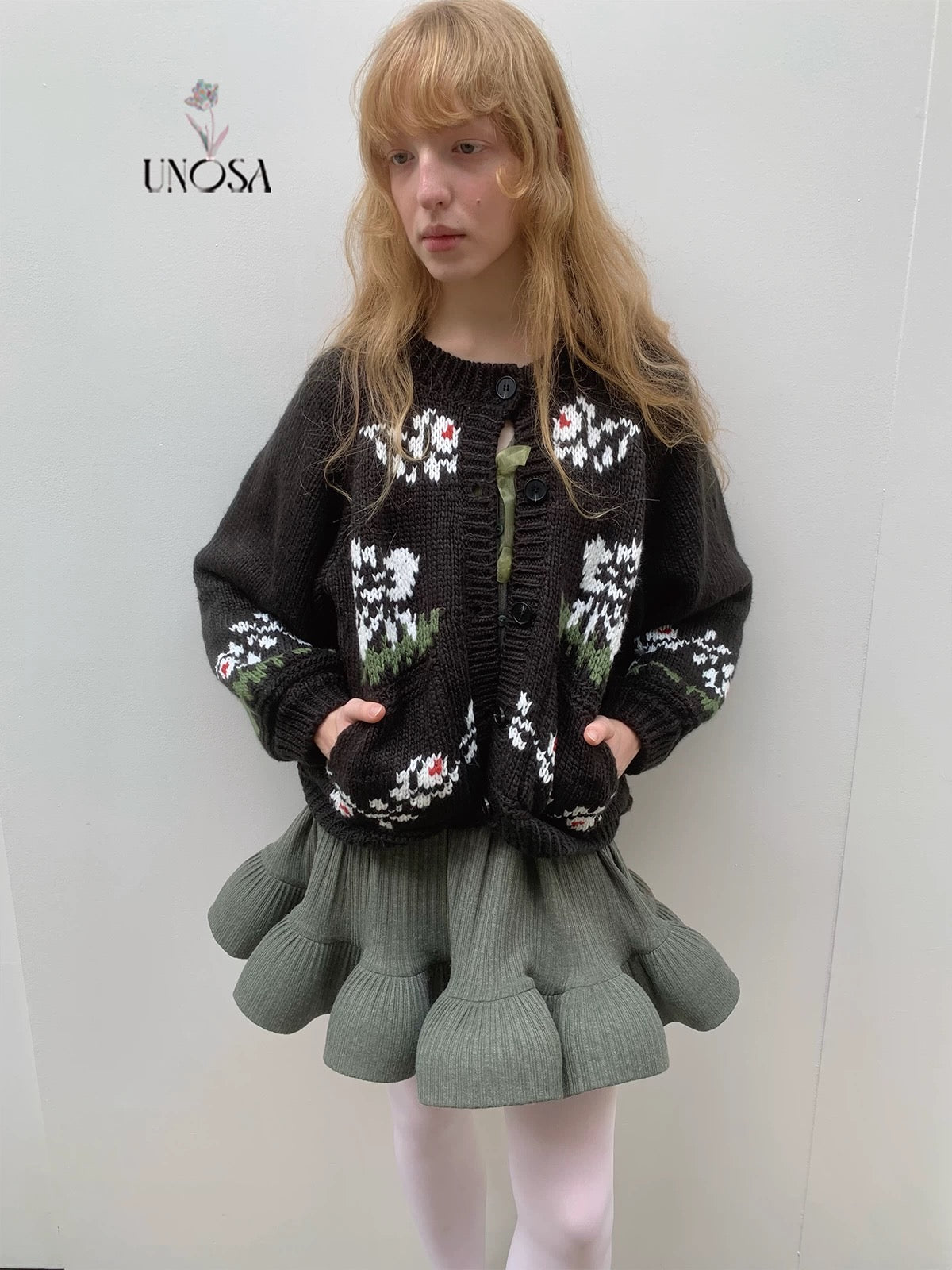 UNOSA Winter Meadow Floral Knitting Cardigan