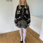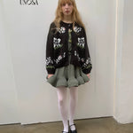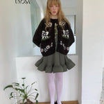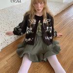 Style keywords: floral knit cardigan · winter cottagecore · vintage knitwear · coquette warm outfit · countryside aesthetic