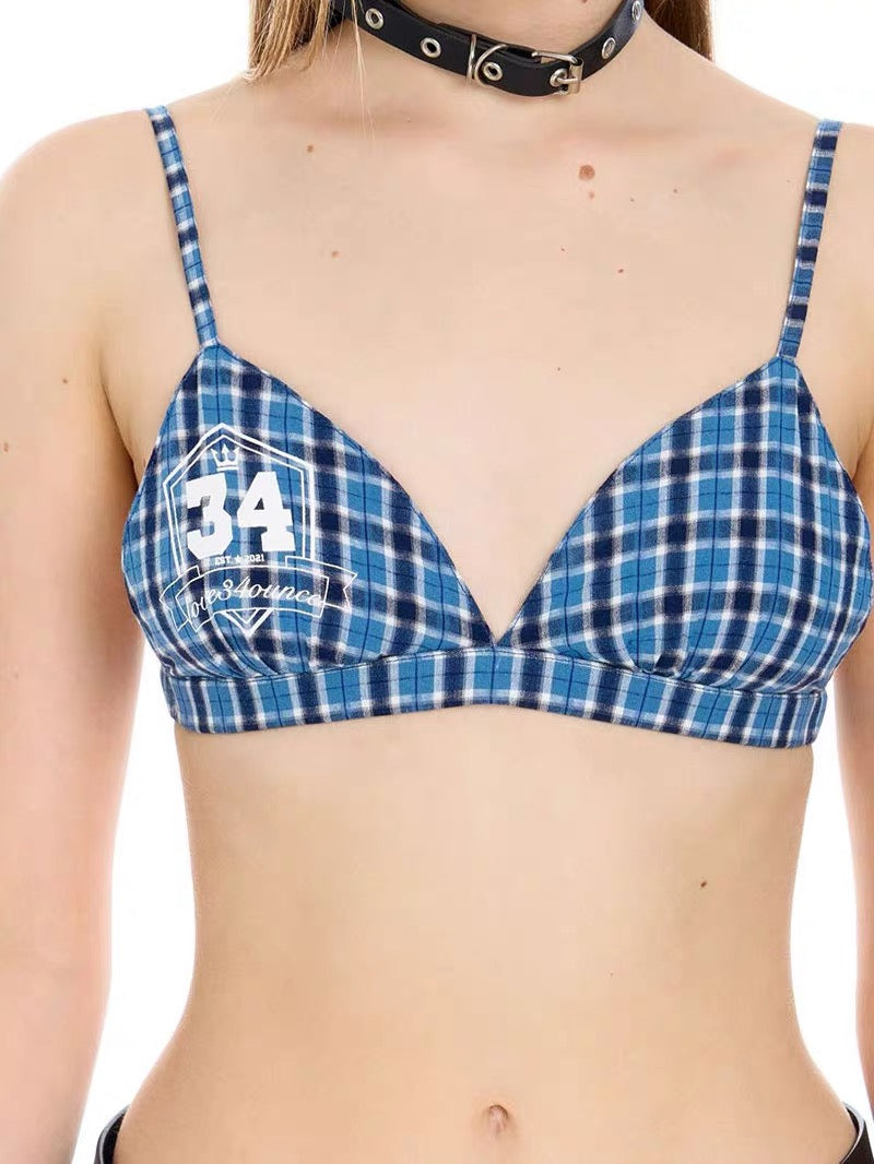 Plaid, padded, and totally rebellious — the Rebel Klein Bra Top is your new favorite layering essential. Inspired by retro lingerie silhouettes and college grunge, this cute blue checkered piece features soft built-in padding, adjustable straps, and a flattering triangle cut.
