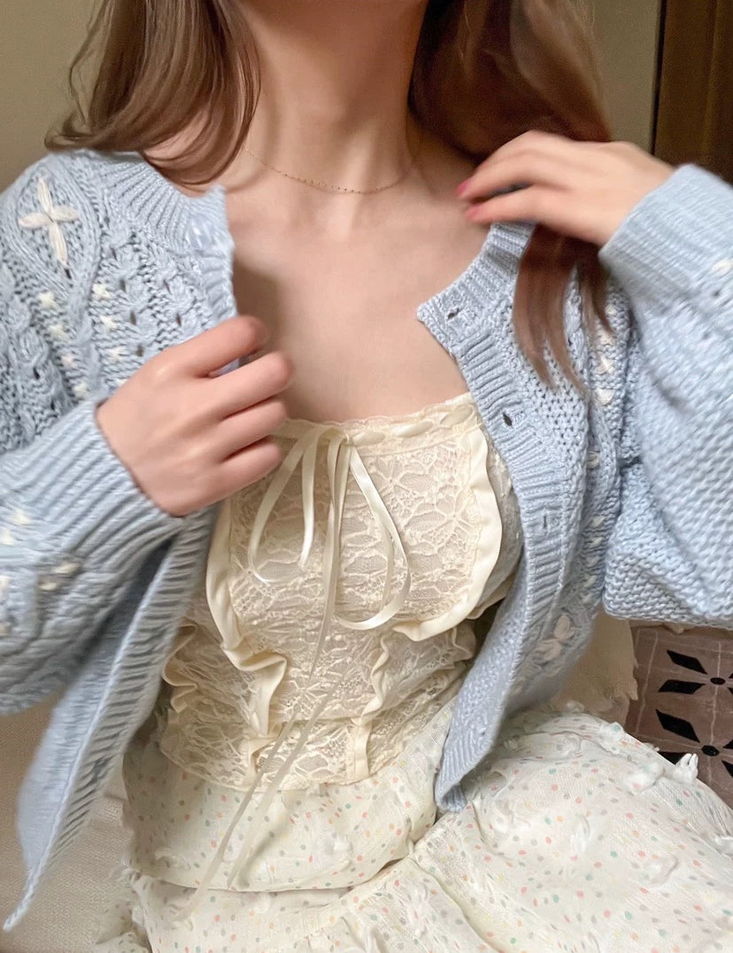 MineBeThyVers Cocoa Dots Lace Sweatshirt