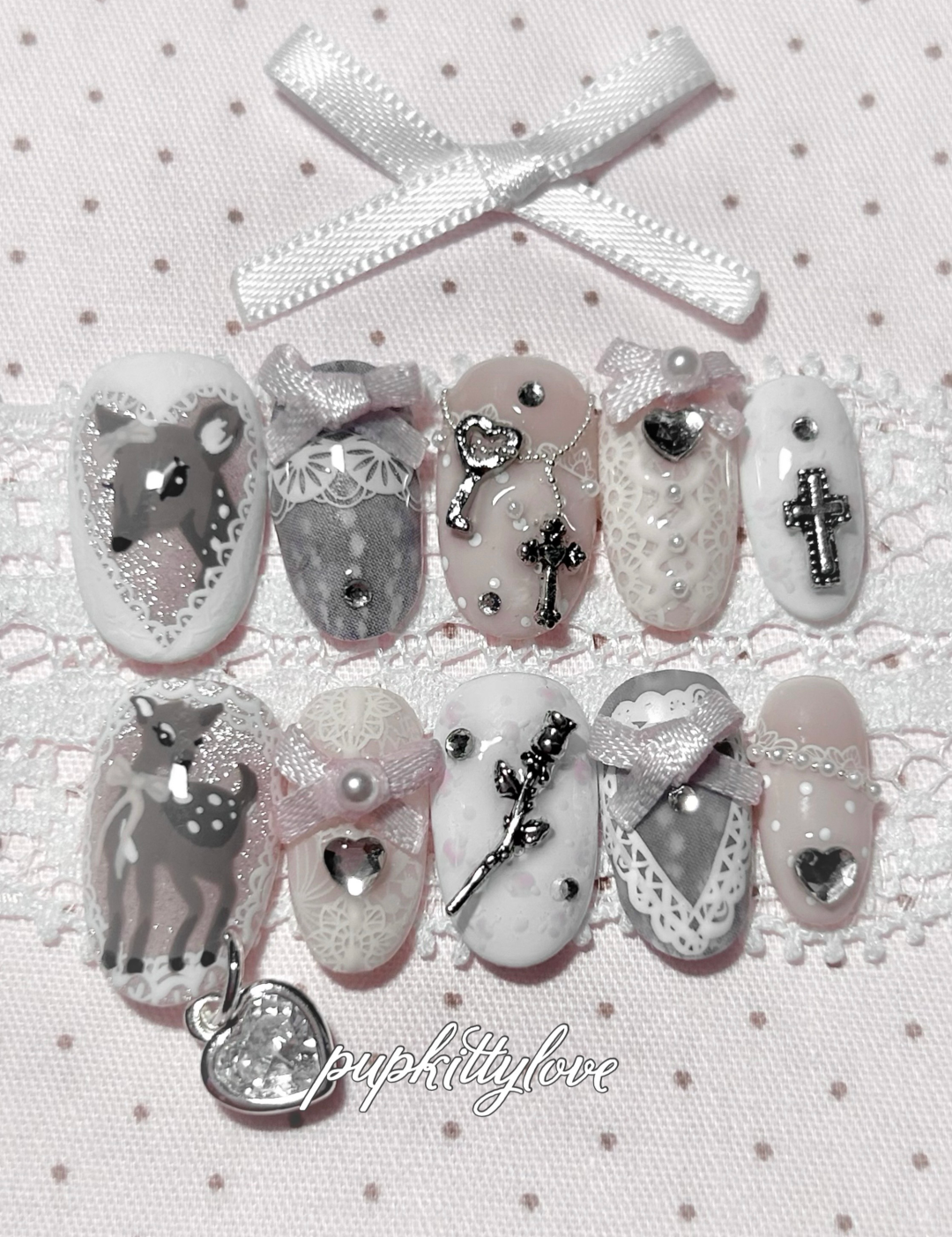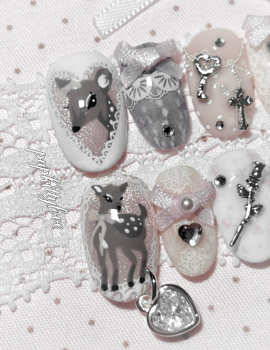 Dream Fawn In Gray Hand-Painted Press On Deer Nail Set
