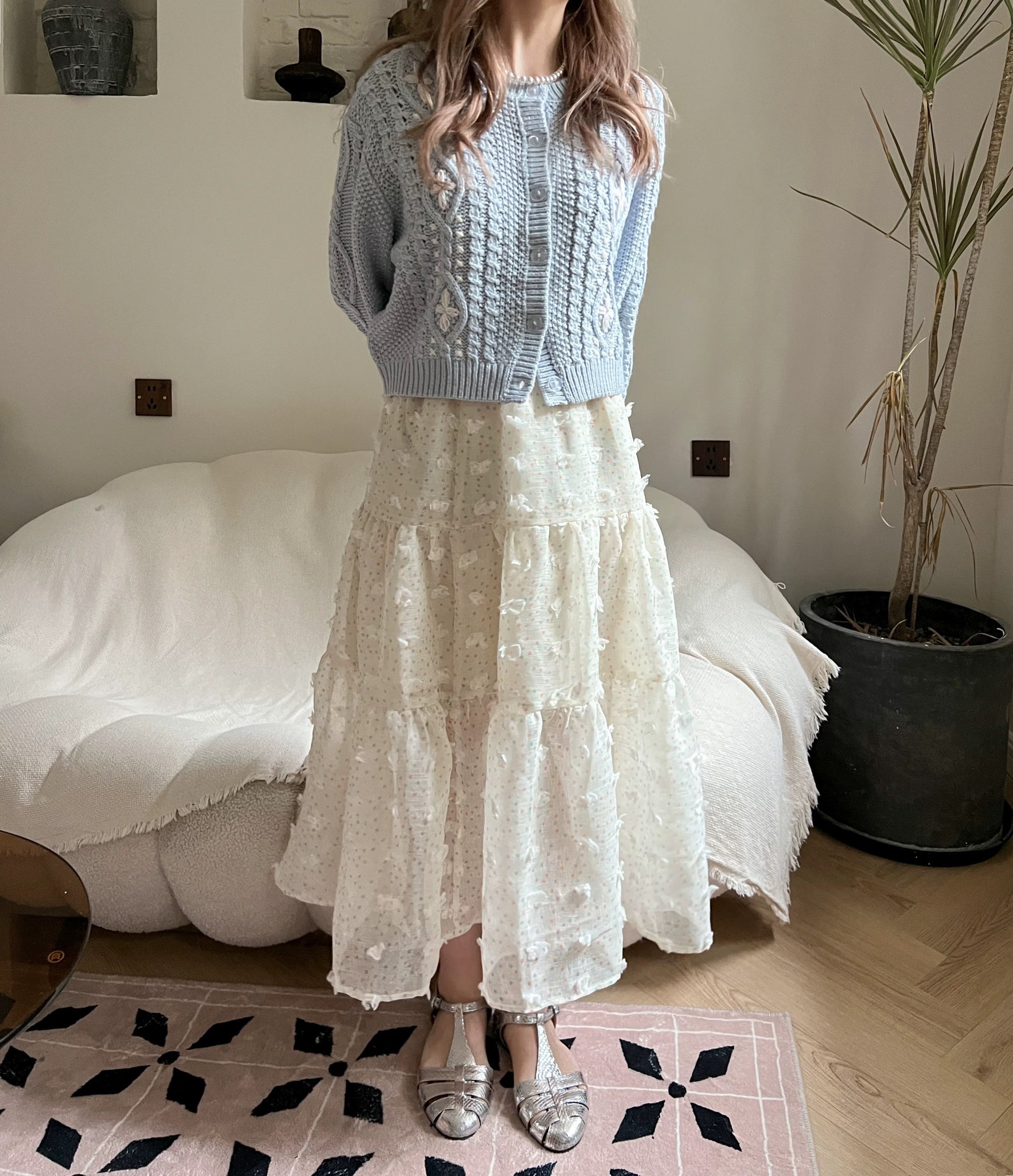 Wrap yourself in the soft daydream of winter skies with the Snow Angel Knit Cardigan.