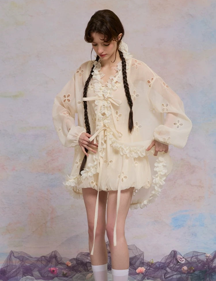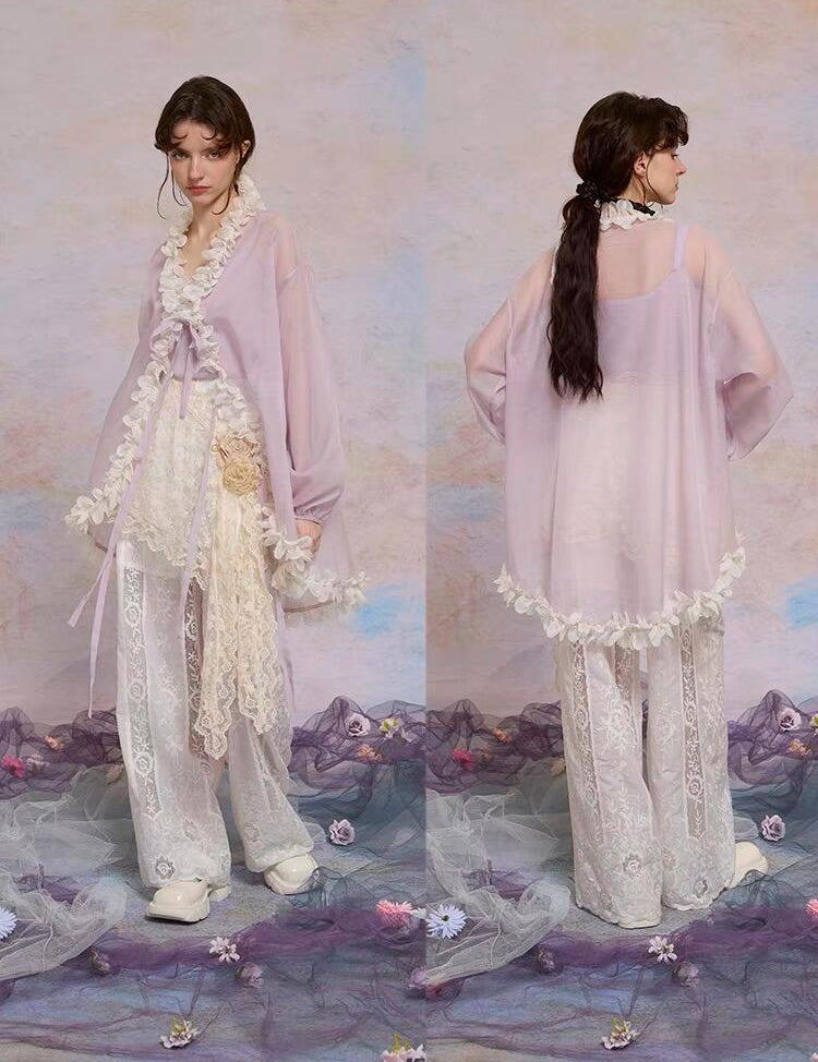 [ラクトーススタジオ] フローラルドリームス ライトウェイト シアーカーディガン