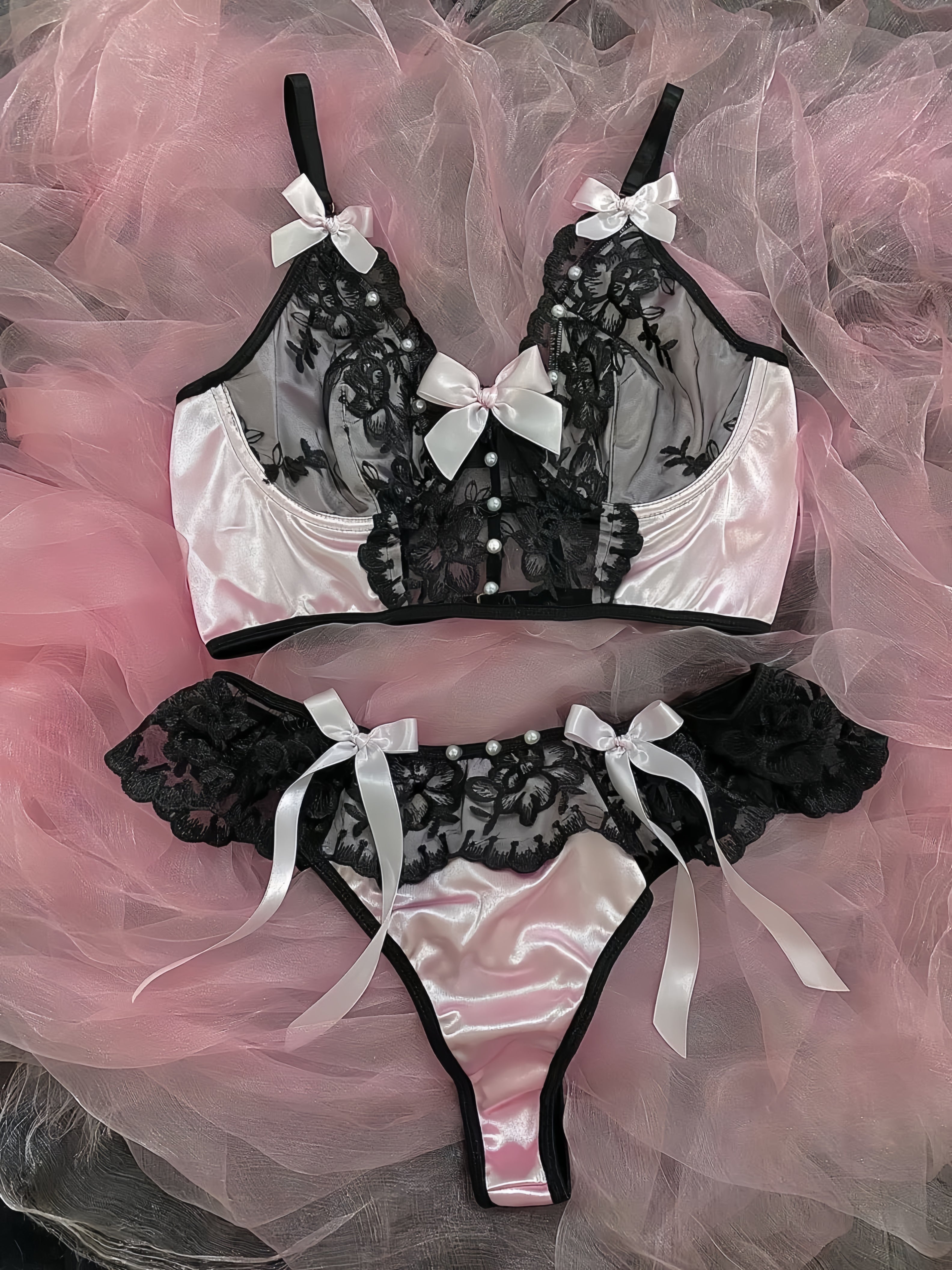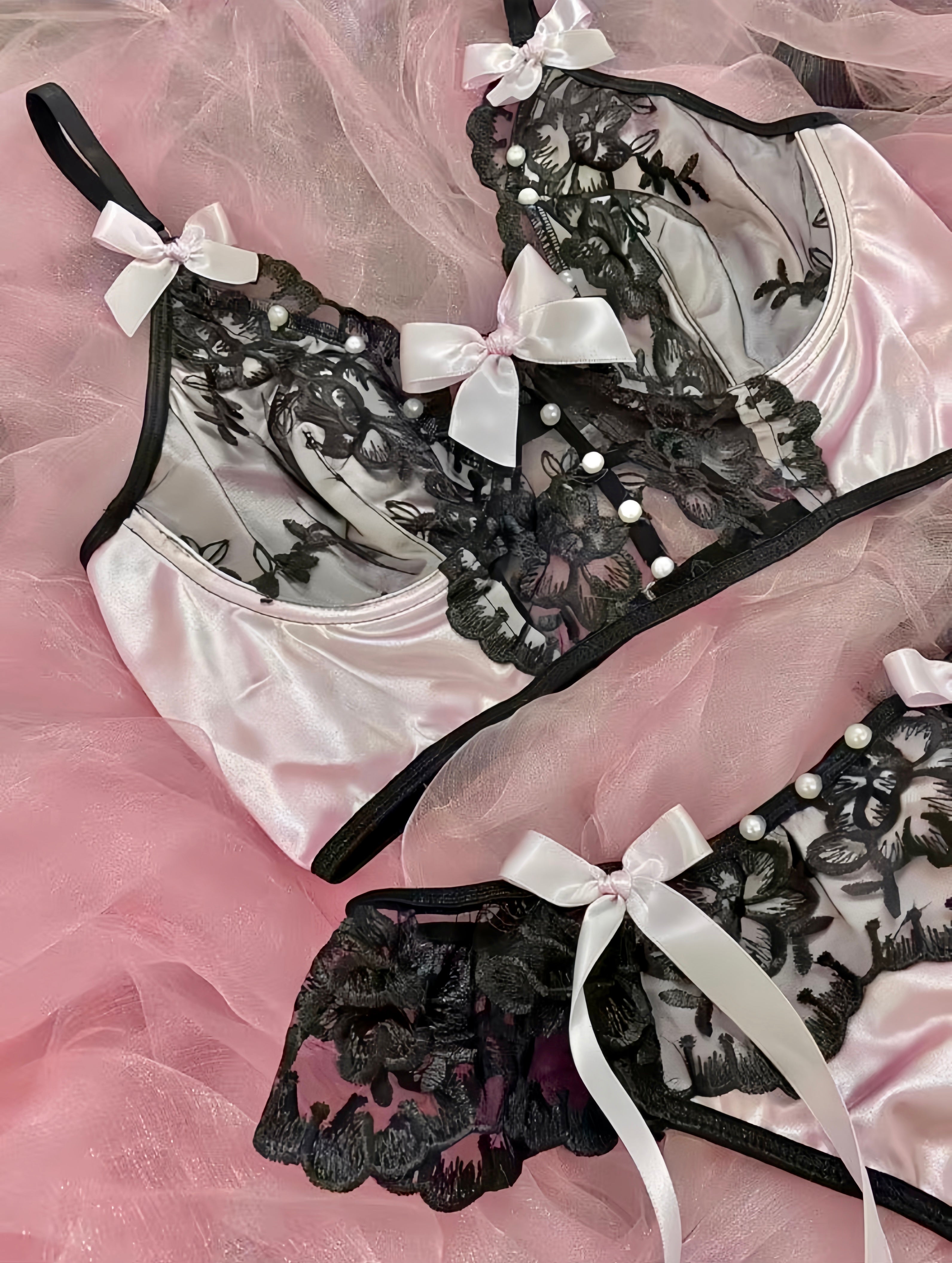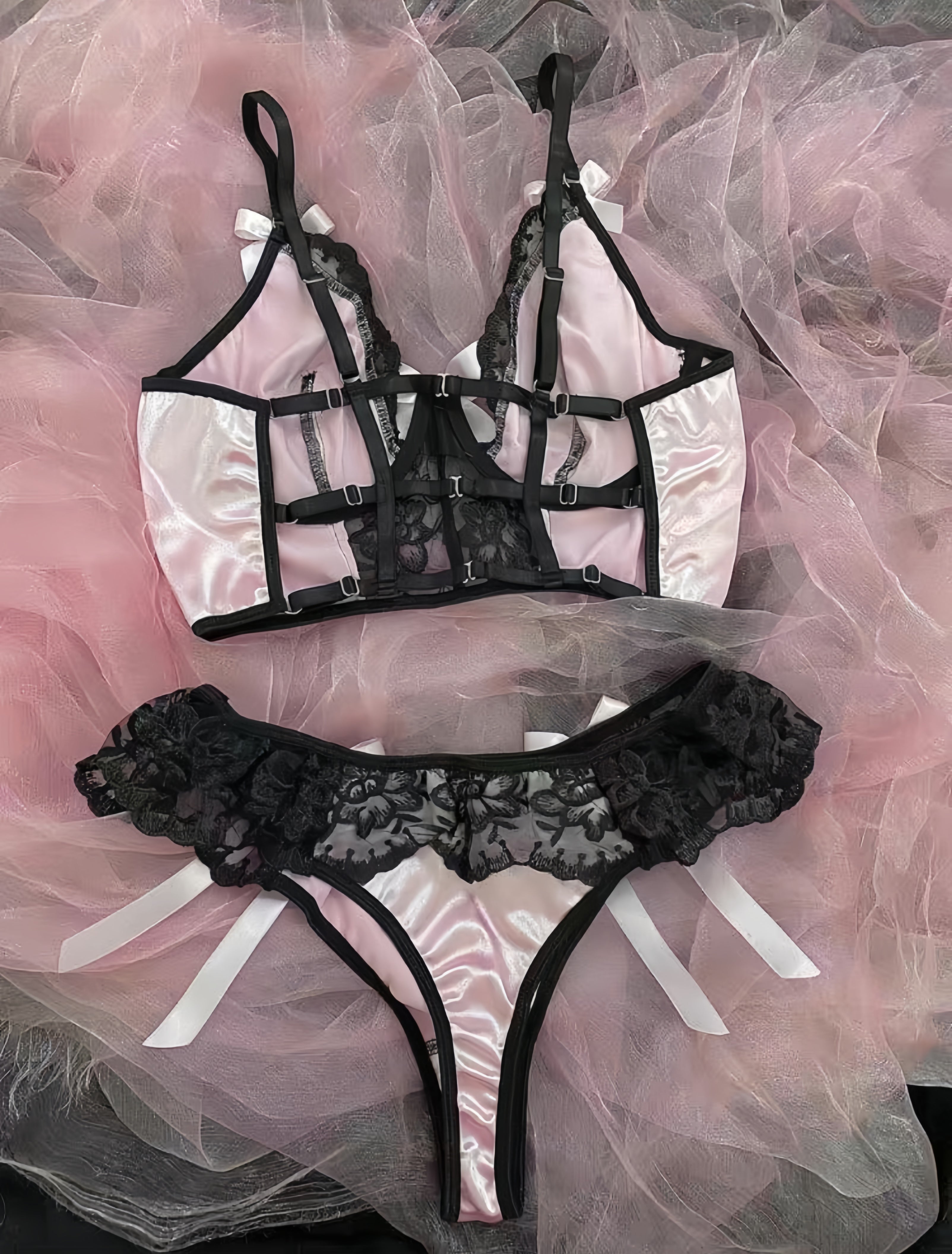 トゥナイト・ハートビート・ランジェリーセットのボディスーツは、ガーリーさとミステリアスさを完璧に融合させた逸品です。クラシックなブラックとピンクのレースで仕立てられたこのハンドメイドランジェリーセットは、あなたを美しく、自信に満ちた気分にさせてくれるでしょう。柔らかな生地とエッジの効いたデザインで、ワードローブの必需品となること間違いなしです。