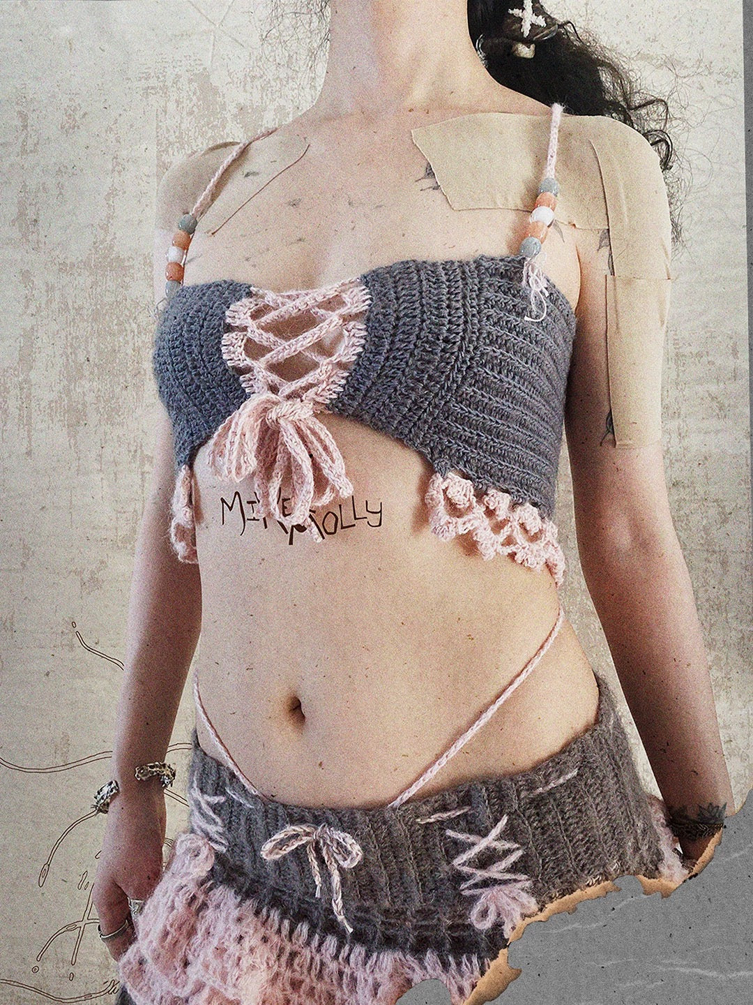 [Mike&Molly] Angel Kiss Hand-Knitted Wings Crop Top