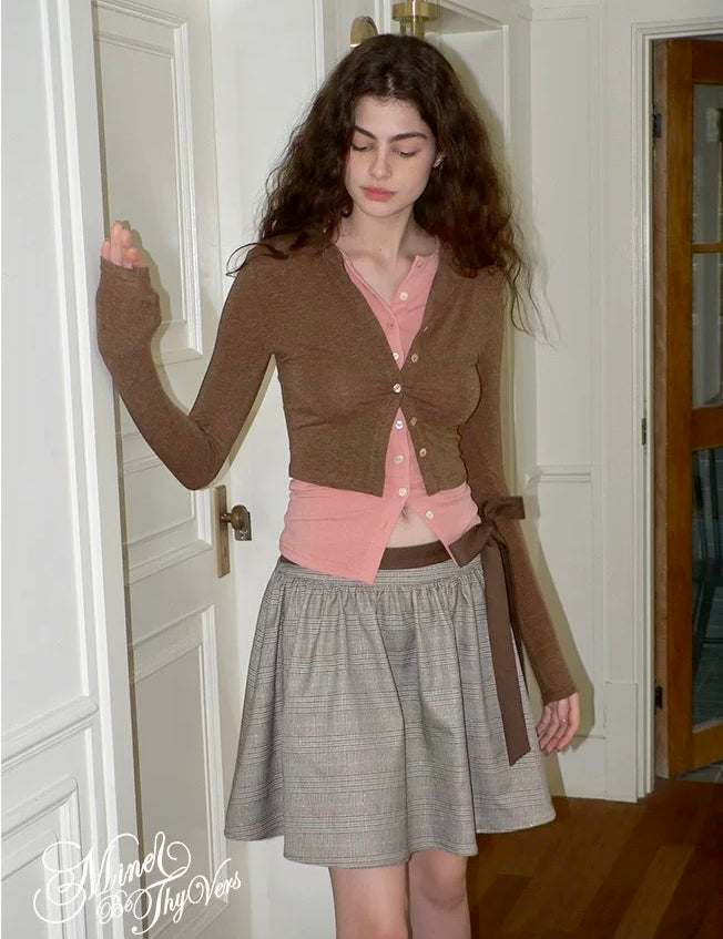 [Mine be thy vers] ムルムル・ダムール チェック柄 Aライン ミディスカート リボン付き