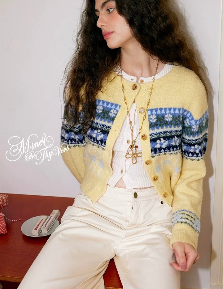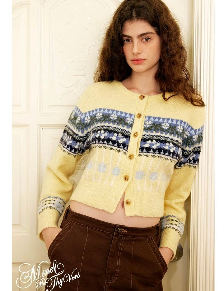 【Mine be thy vers】フルール・デ・ネージュ フェアアイル柄カーディガン