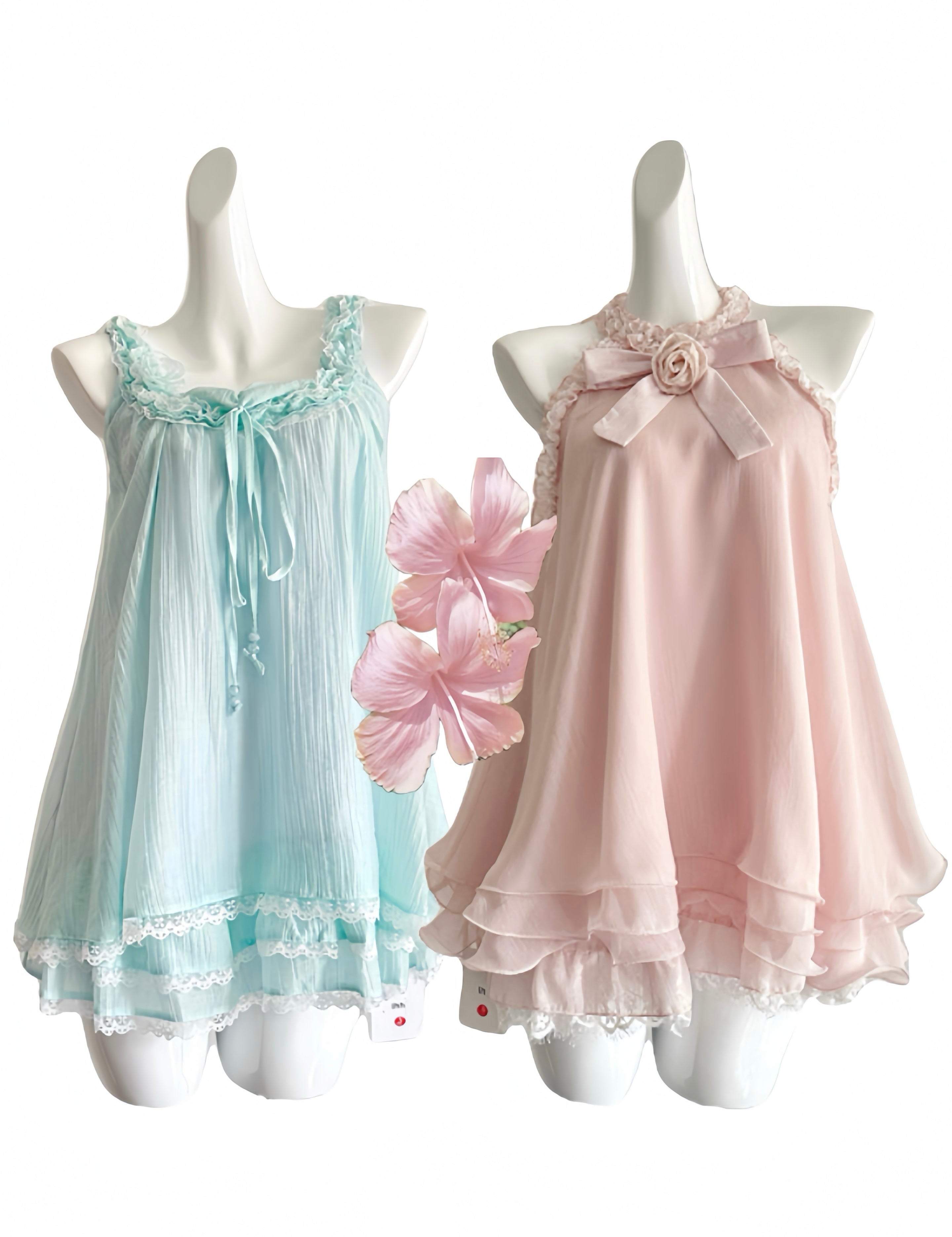 [Sweden Warehouse Rose Island] Rosy Blush Ruffle Mini Dress