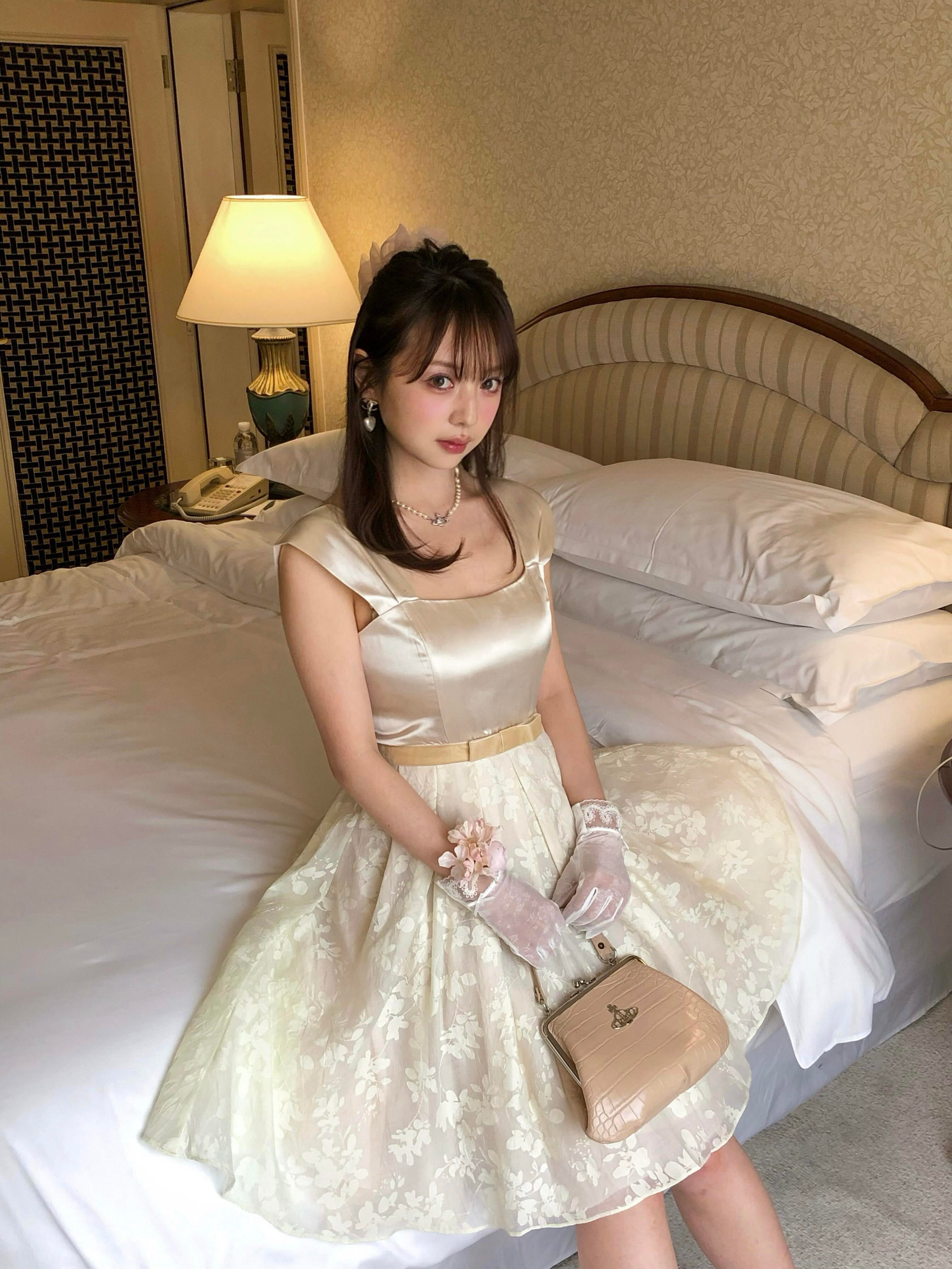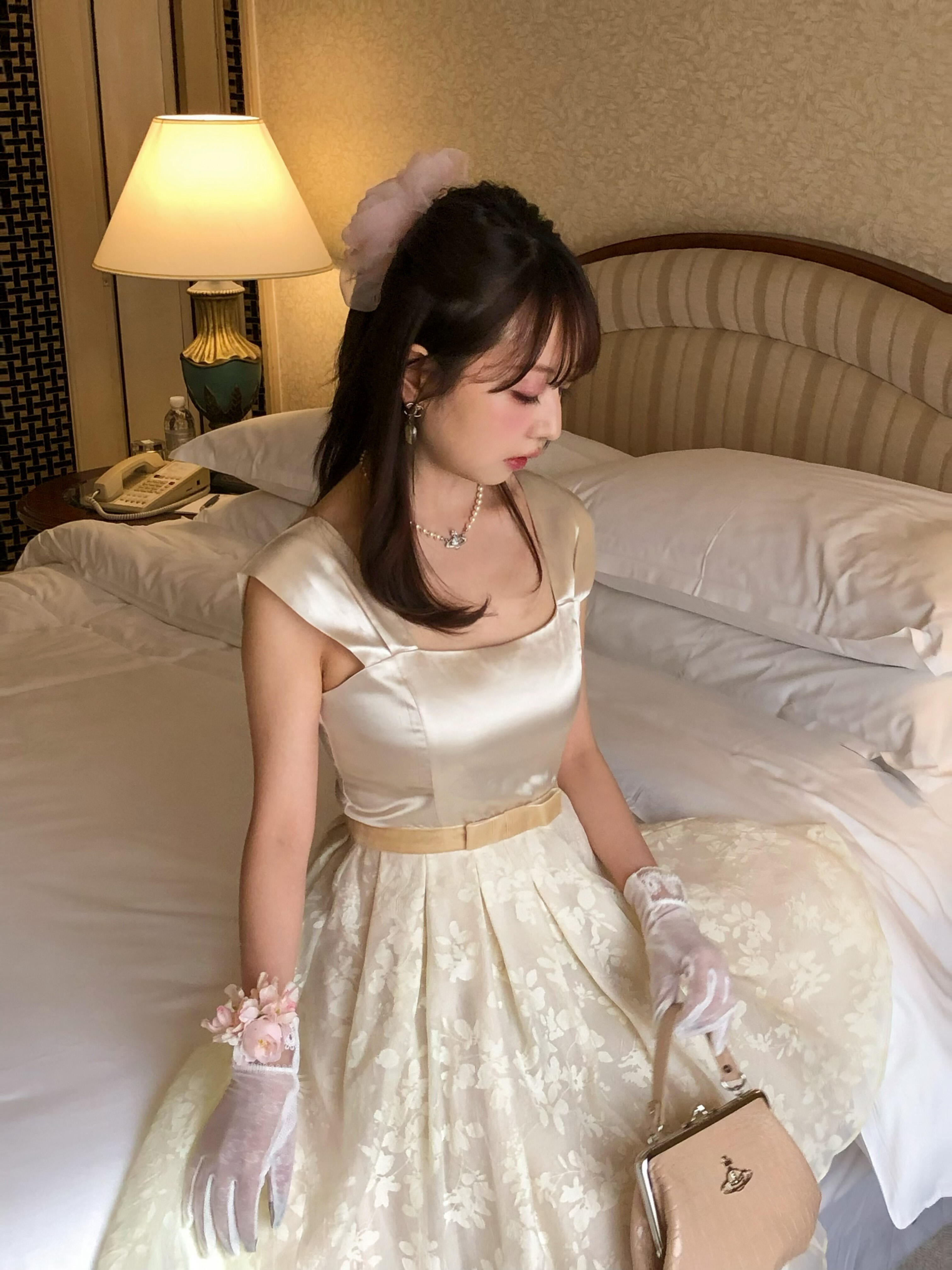 肌見えの良い上品なシャンパンカラーが印象的で、纏うだけで高級感と儚さを演出してくれます。