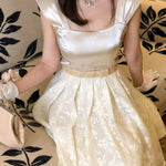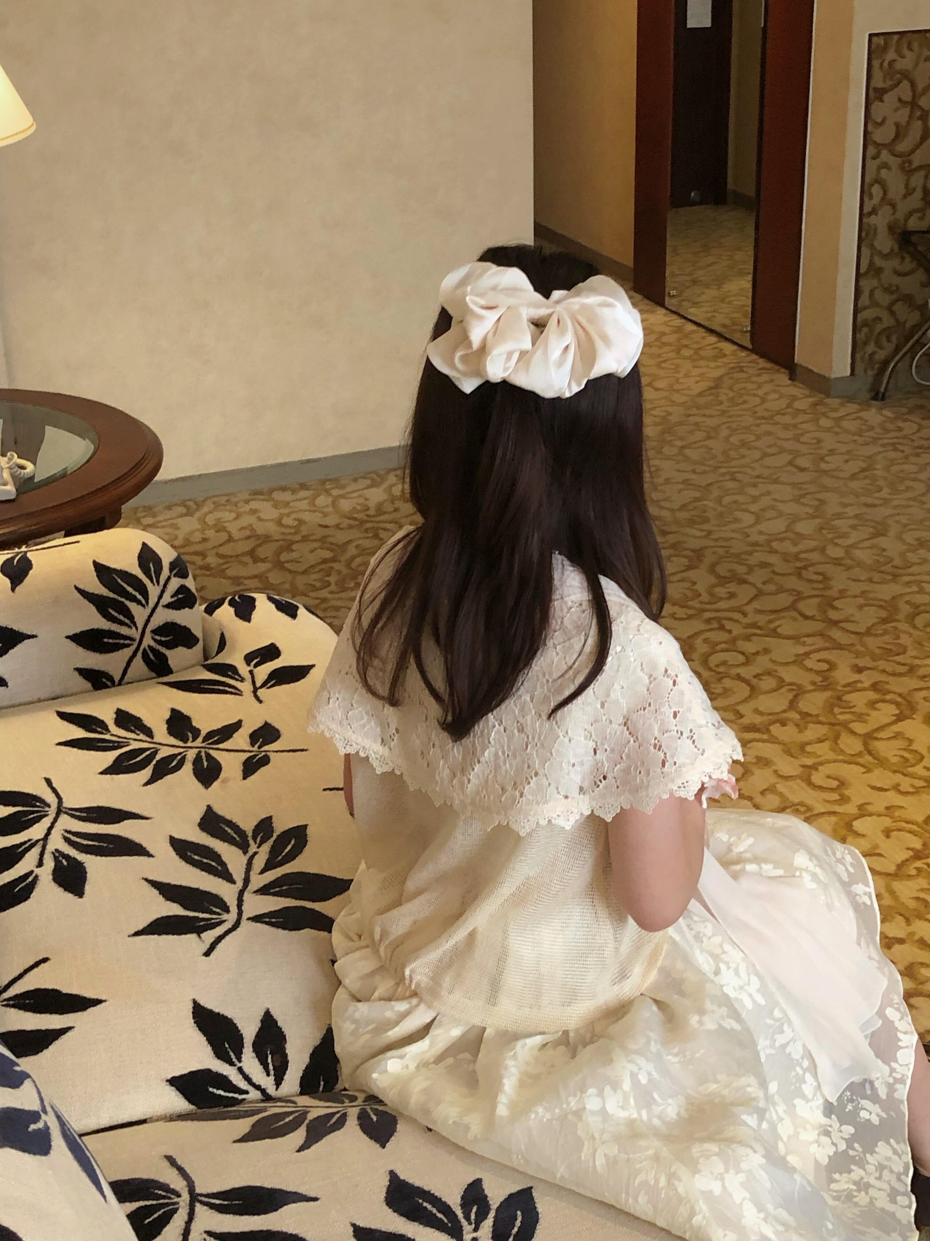 サテン部分のカラーもとても美しく、光沢がありながら柔らかい印象で、お誕生日や少しフォーマルなシーンにもピッタリの一枚です。