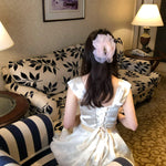レースアップバックはヴィンテージのロリータファッションを彷彿とさせ、程よいノスタルジーと魅力をプラスします。