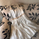 この魅惑的なドレスは、質感、優雅さ、繊細な女性らしさを兼ね備えた 3 種類の異なる生地を贅沢に組み合わせて作られています。