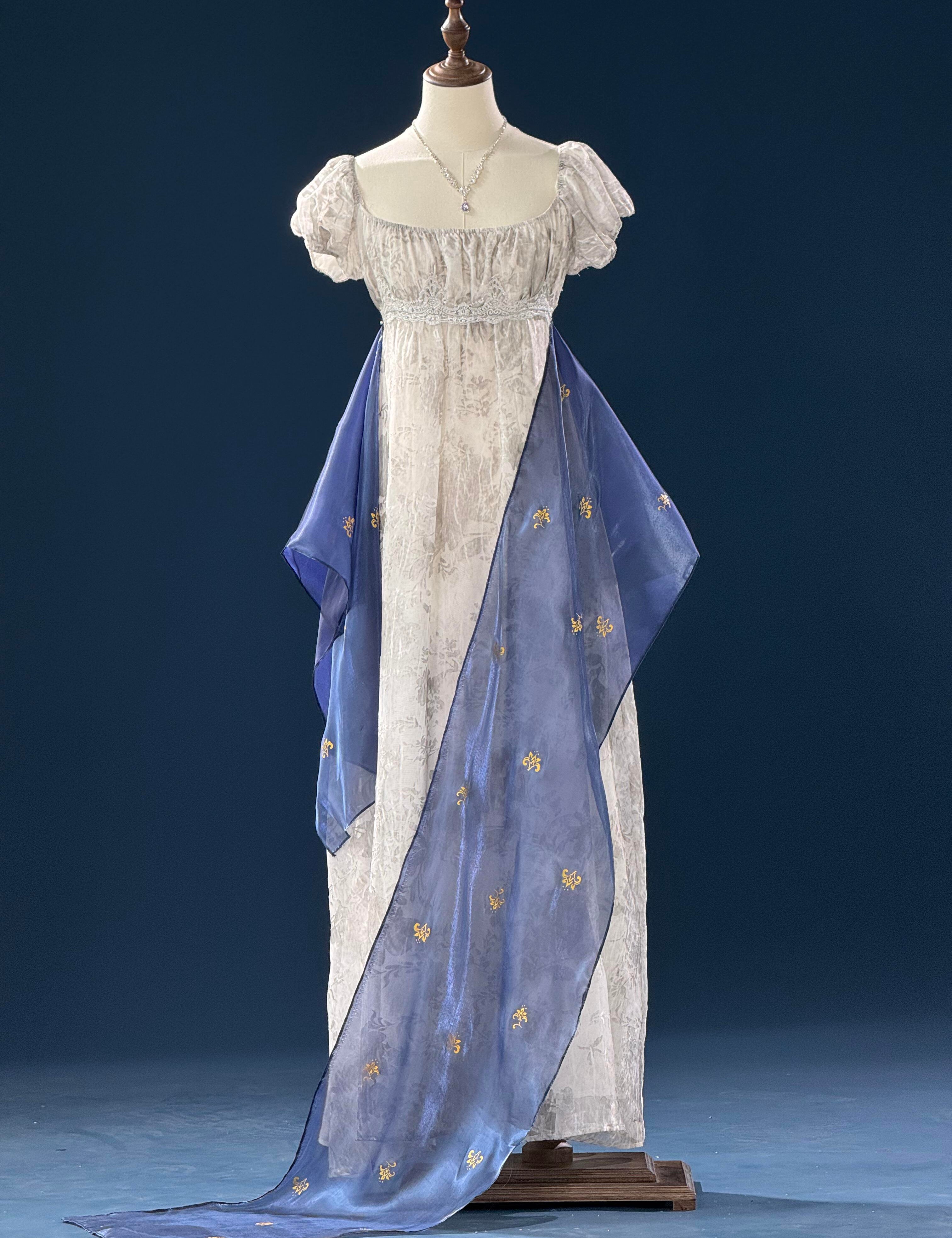 [100%シルクバージョン、テーラーメイドサイズ] リリーフロスト 秋 エンパイア ドレス ガウン (世界中送料無料)o