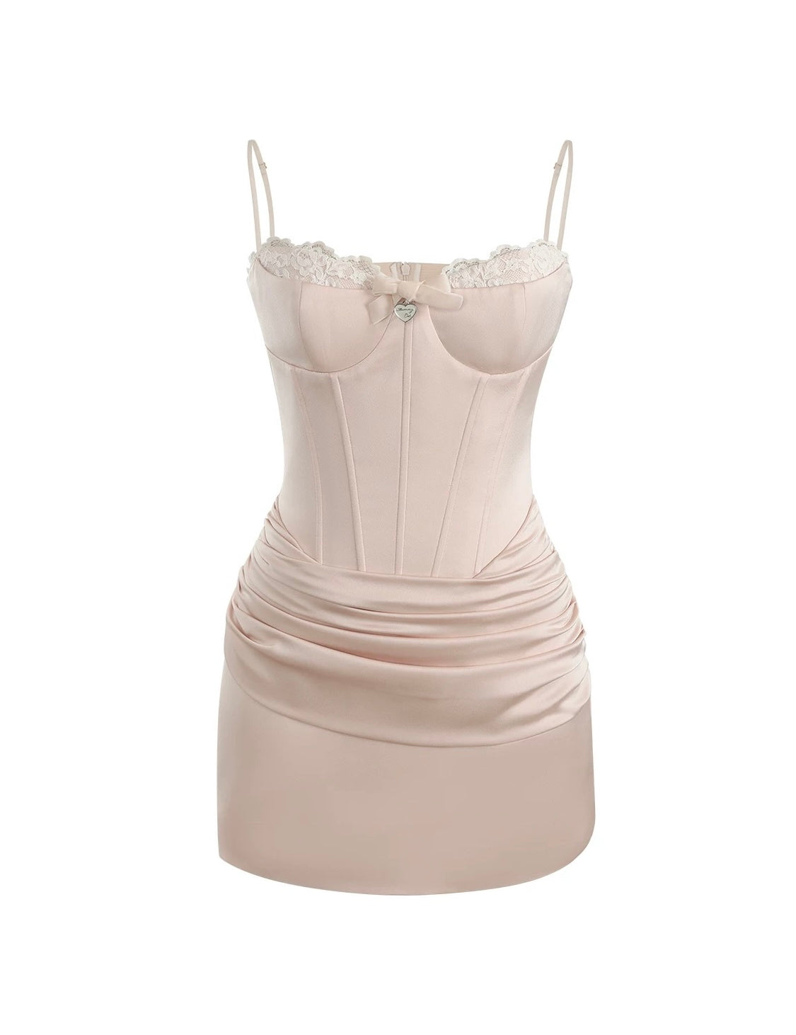 [マミーキャット] 私のエレガントな天使のサテンとレースのミニドレス