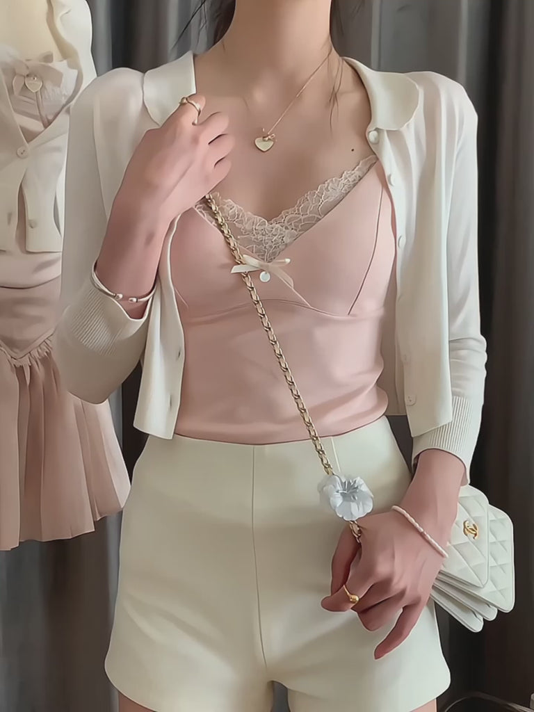 [ママ猫] 甘やかされて育った天使のレースリボンニットトップス