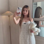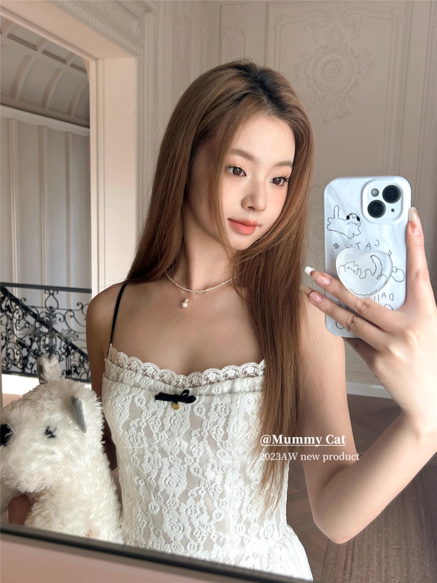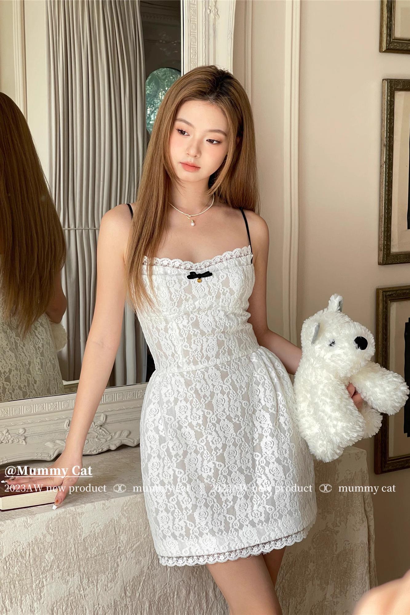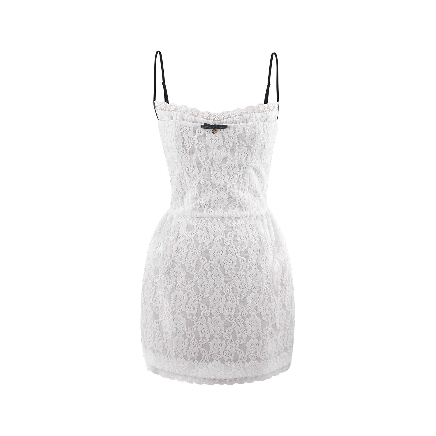 繊細なレースのディテールと、細く調節可能なストラップが優雅でフェミニンな印象を与えるドレスです。白い色合いが、ドレスの夢心地で天使のような雰囲気をさらに引き立て、視覚的に美しくロマンチックな印象を与えます。