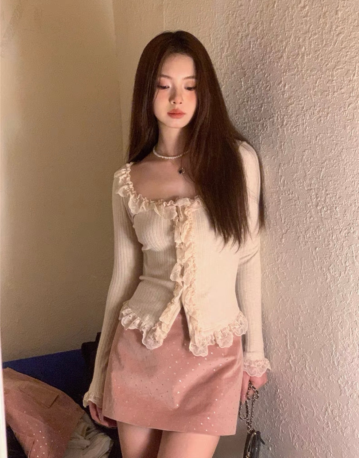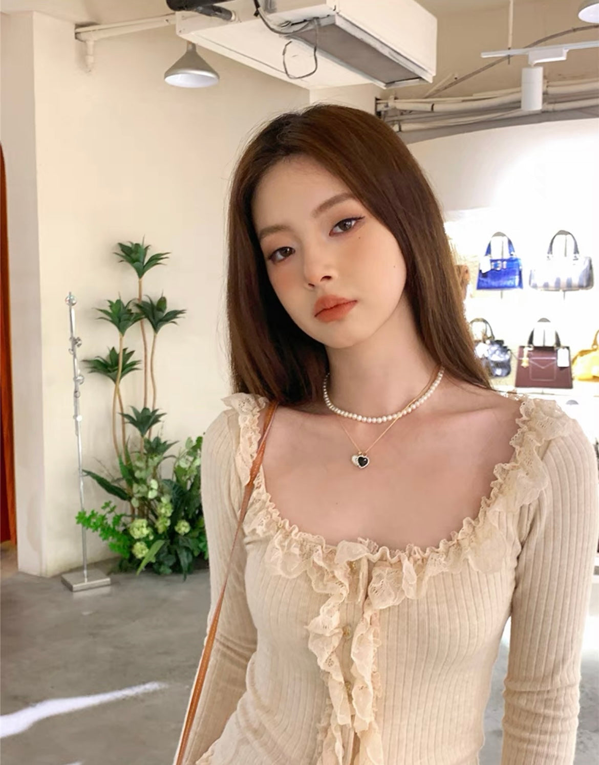 Get trendy with [Mummy Cat] Peachy Pink Lace Top -  available at Peiliee Shop. Grab yours for $41 today!