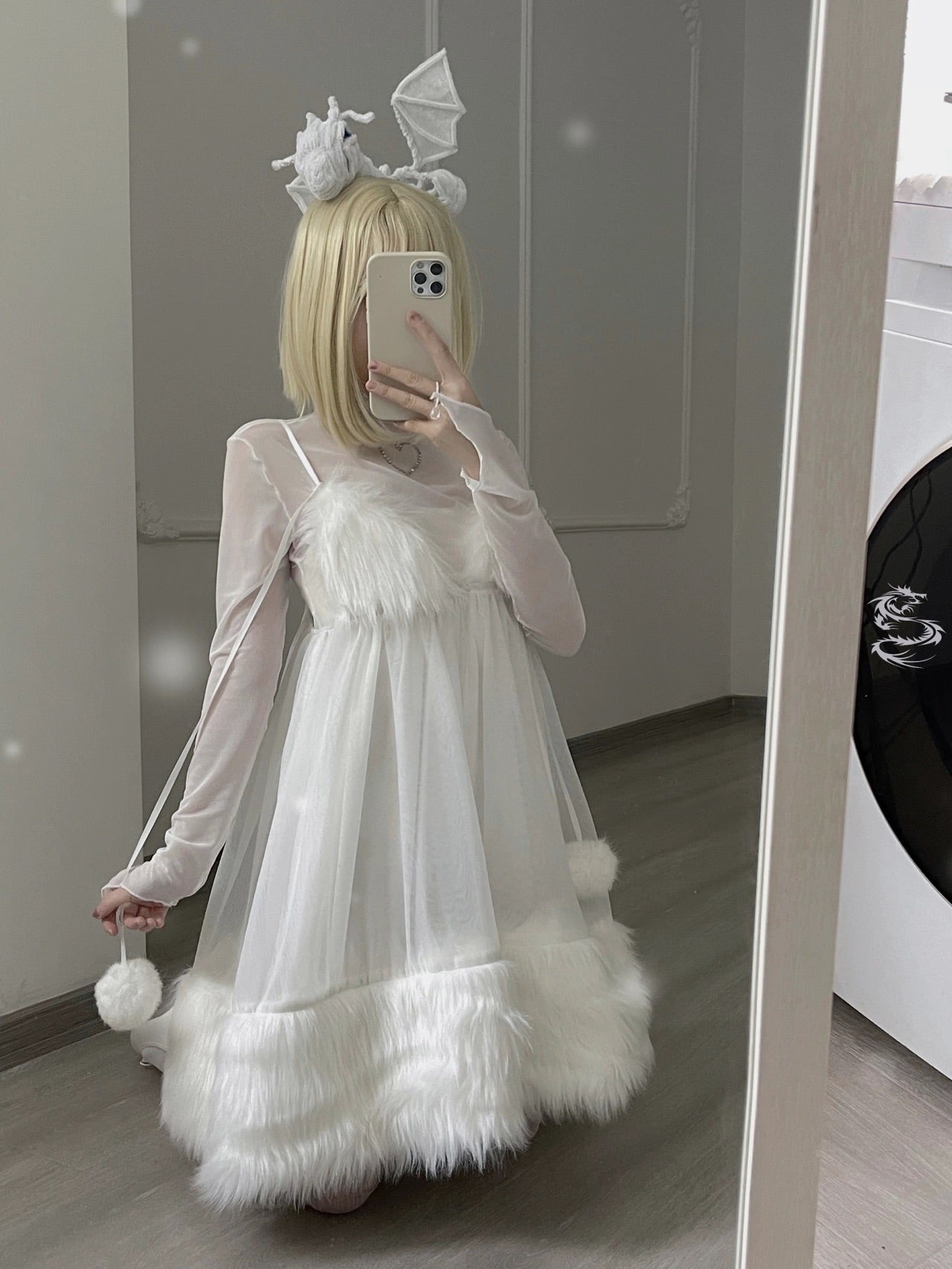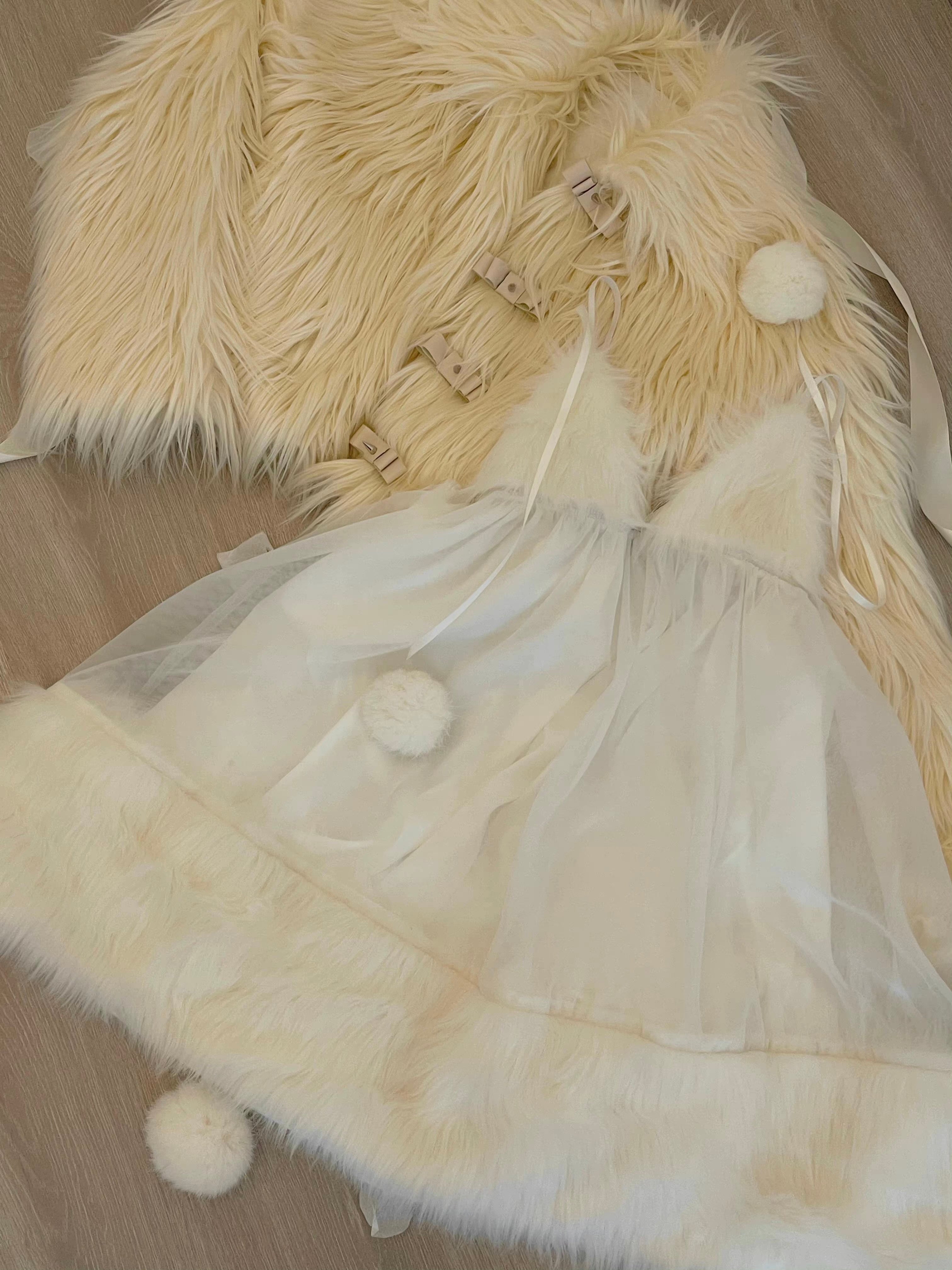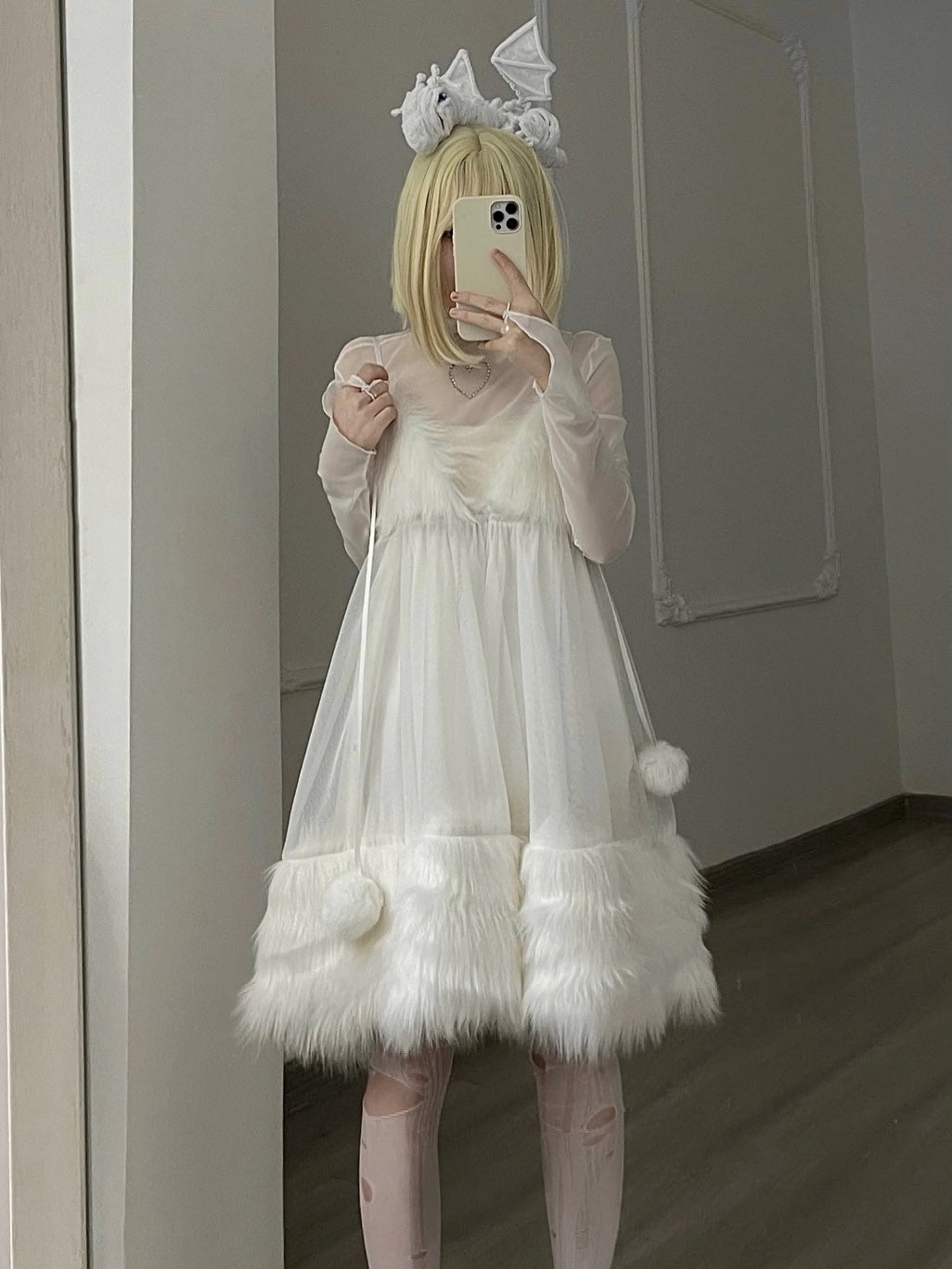 ドレスとポンポン(Peiliee x Nololita の製品のみ)はどちらも 100% フェイクファーなので、動物を傷つけることはありません ♥️
