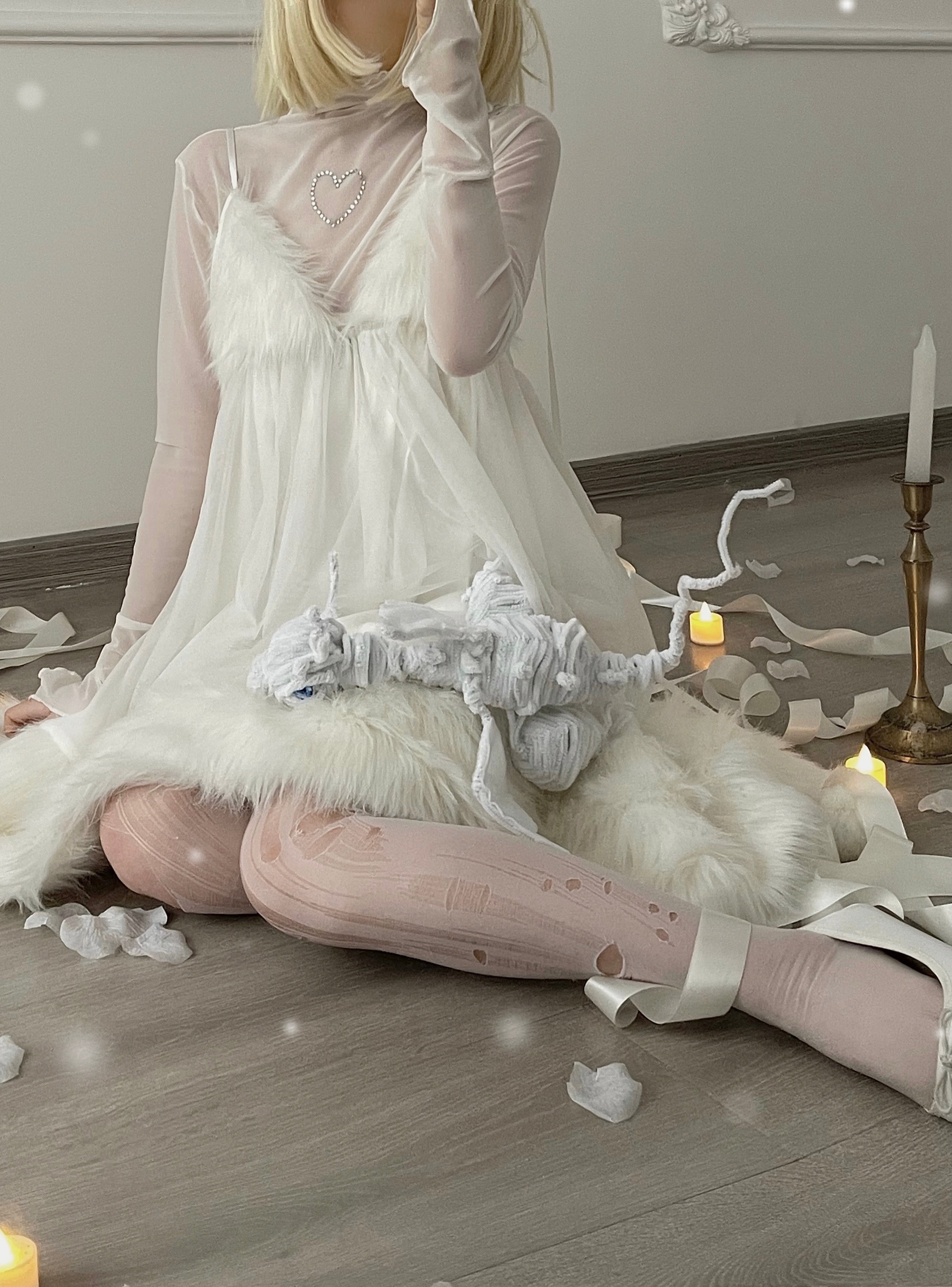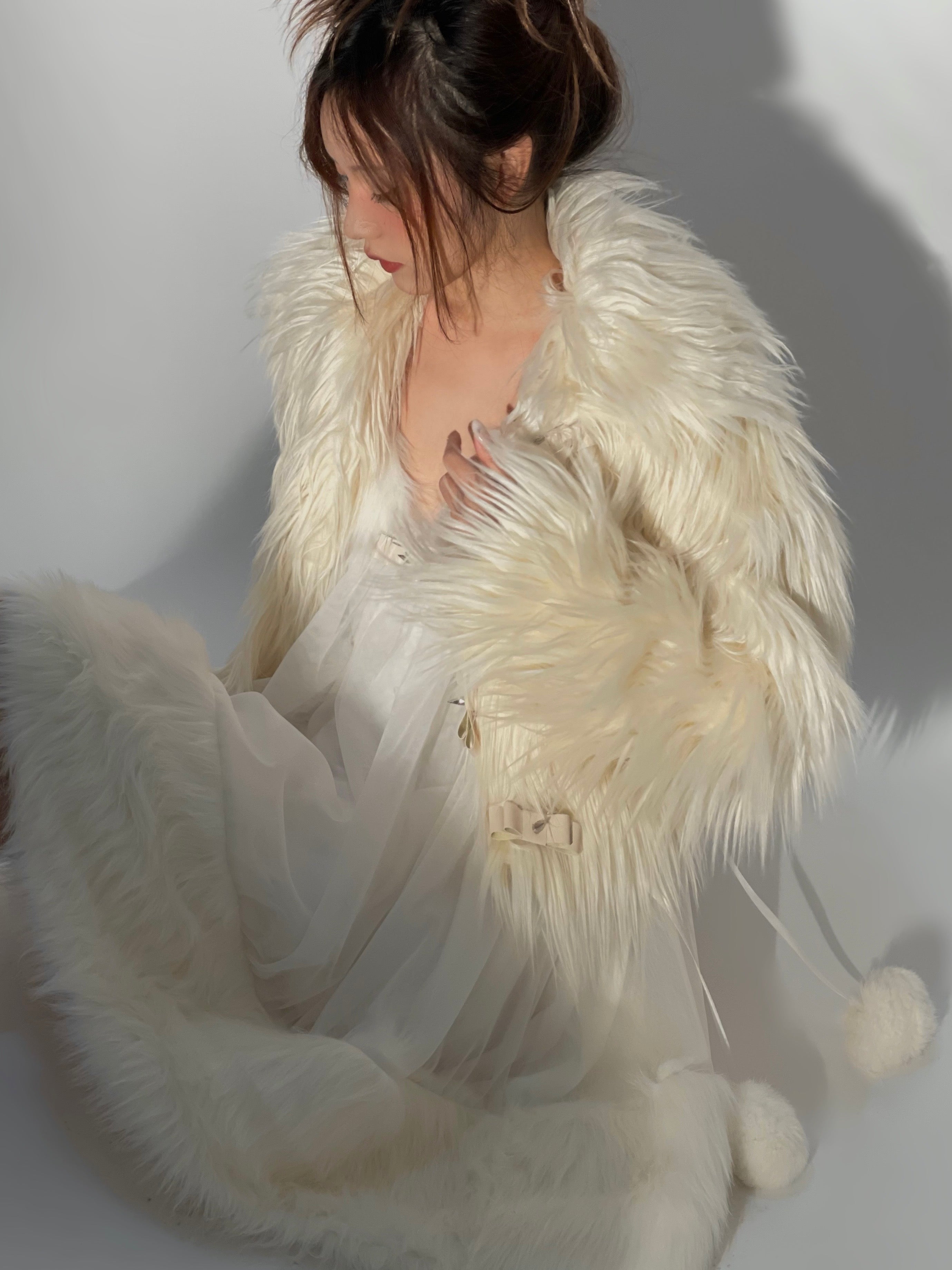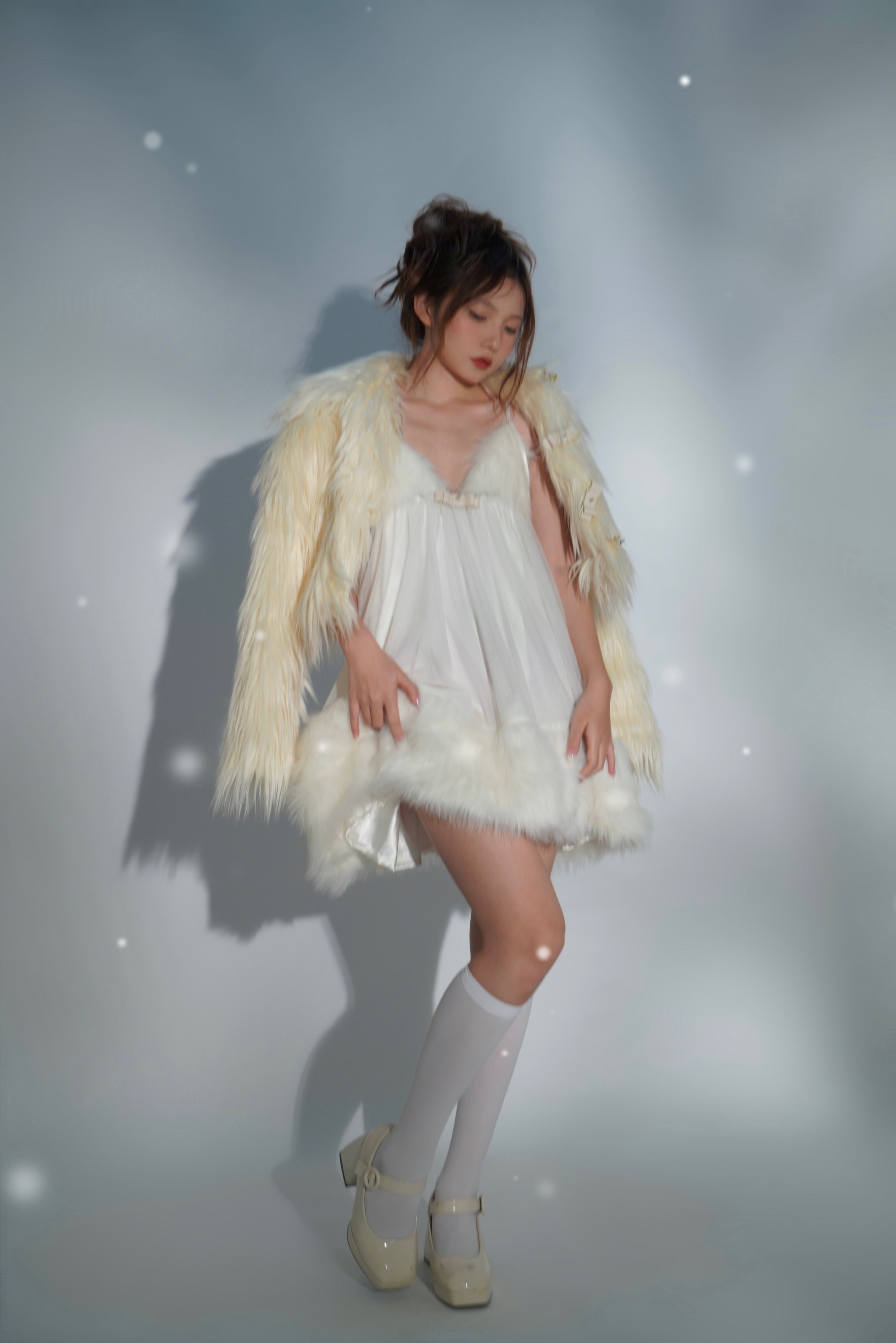 ドレスとポンポン(Peiliee x Nololita の製品のみ)はどちらも 100% フェイクファーなので、動物を傷つけることはありません ♥️