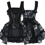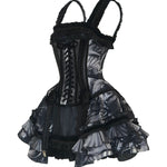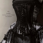 フェイクツーピース構造で、構造的な韓国の錦織とプリント生地を組み合わせ、ボリューム感のあるシルエットを実現。ボディスにはウエストボーンが施され、シェイプアップ効果を高め、背中のコルセットレースで調整が可能。繊細な手作業によるプリーツトリムが贅沢なタッチを添えています。サイドウエストの装飾は、ヨーロッパ風のロゼット刺繍で、ウエストをキュッと引き締める効果を高めています。