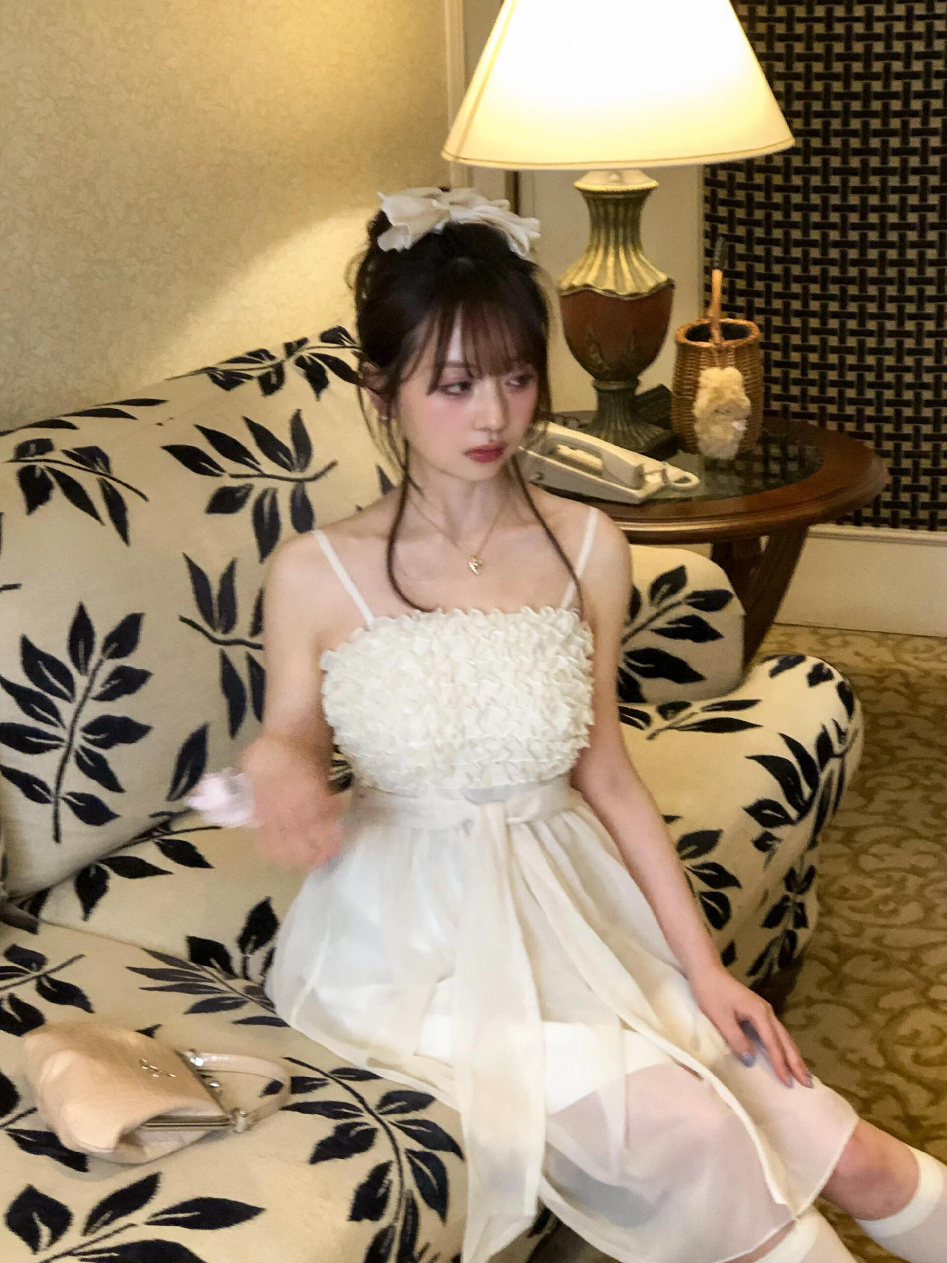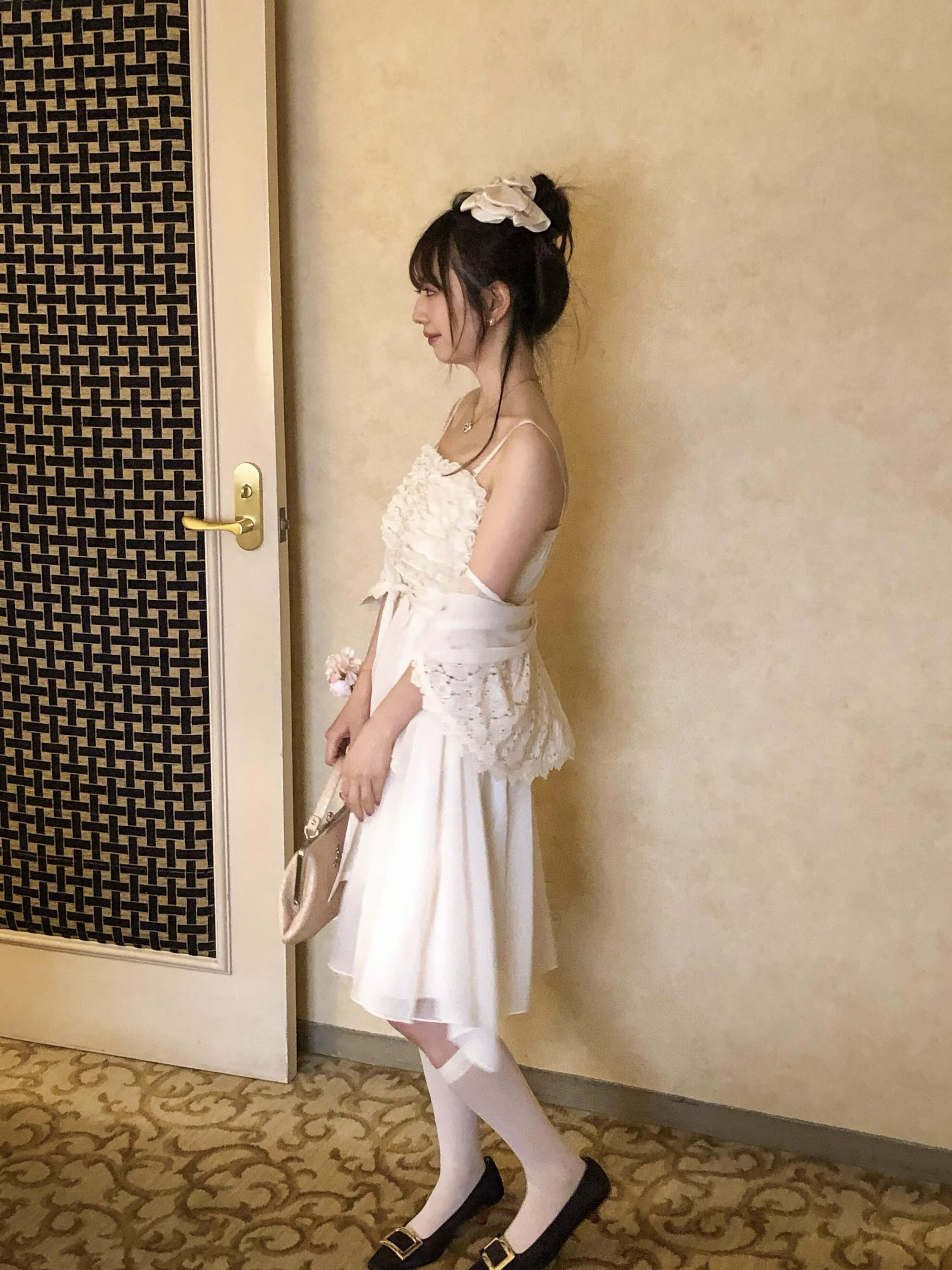 他にはない魅力を持つ、まさに特別なキャミソールドレスです。Nanakoヴィンテージレースショール(スカーフ)と合わせて、さりげなく美しく、ノスタルジックなコケット風ルックを演出するのがおすすめです。
