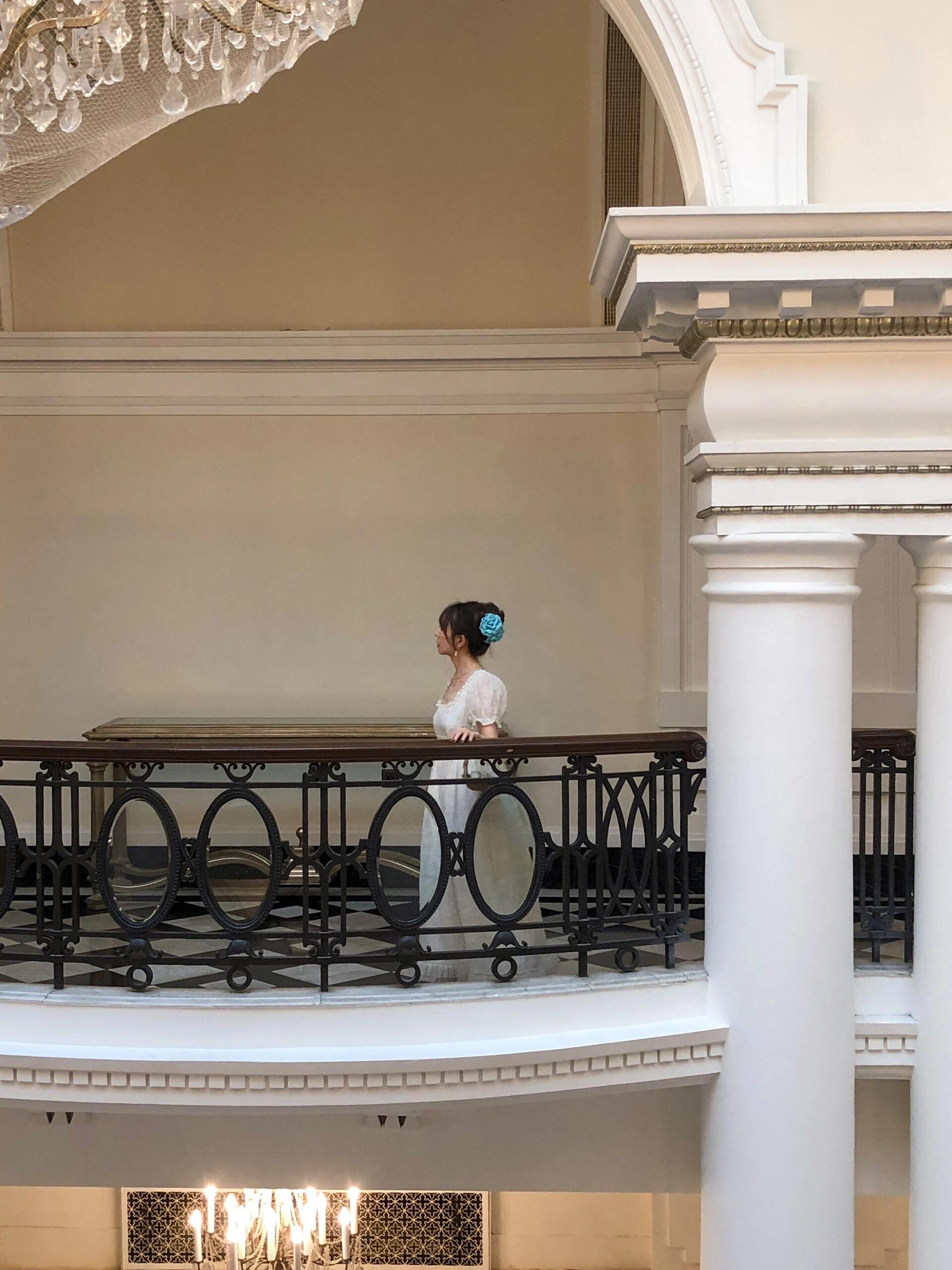 エンパイアシルエット、エンパイアライン、エンパイアウエスト、あるいは単にエンパイアとは、バストのすぐ下までフィットするボディス(ハイウエストに見える)と、ゆったりとした丈で体にぴったりフィットするギャザースカート(ボリュームのあるペチコートではなく、体にぴったりとフィットする)を備えた服のスタイルです。このシルエットは、お腹周りを隠したり、バストを強調したい洋ナシ体型の方に特によく似合います。また、このドレスの形状は、体型を長く見せる効果もあります。 - Wikipedia