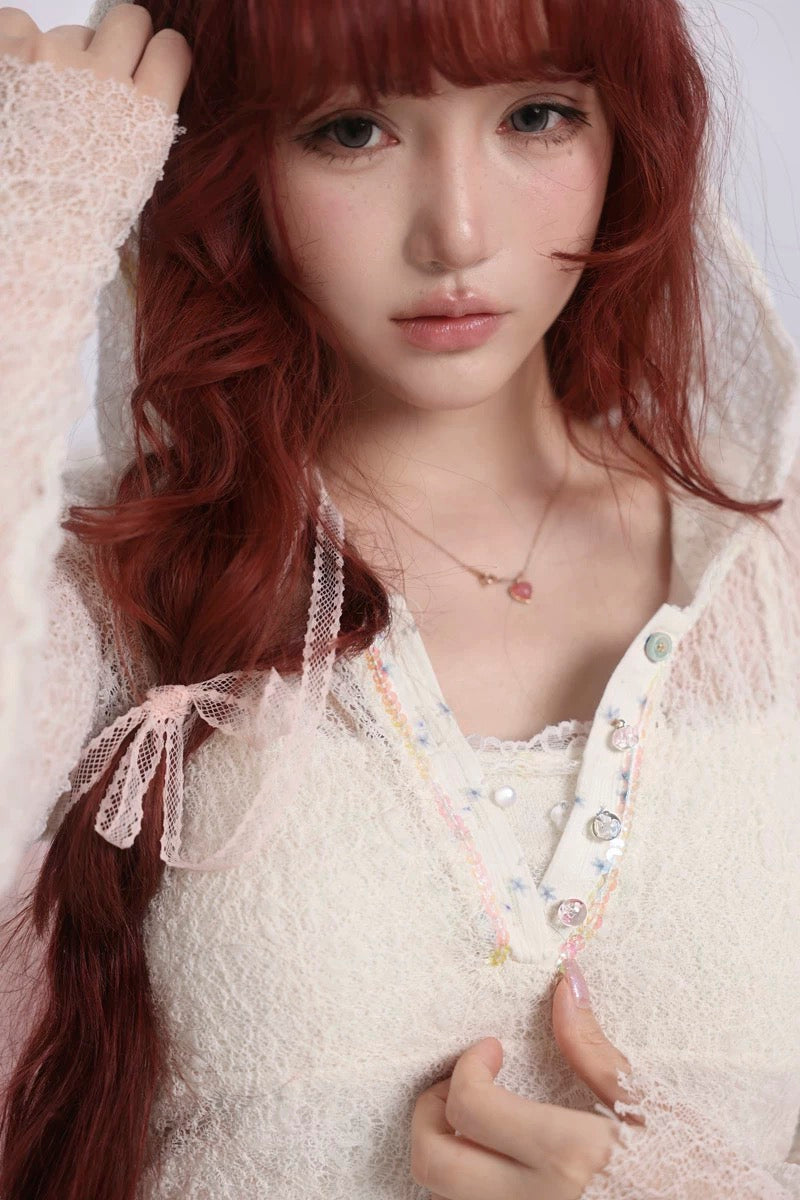 [ローズアイランド] ロージーラブレターレースサマーカーディガン