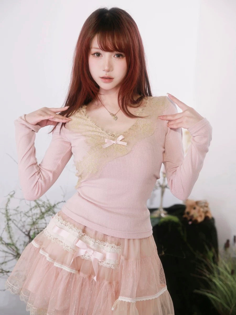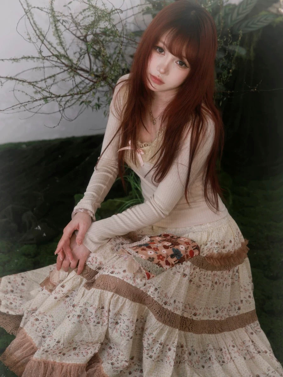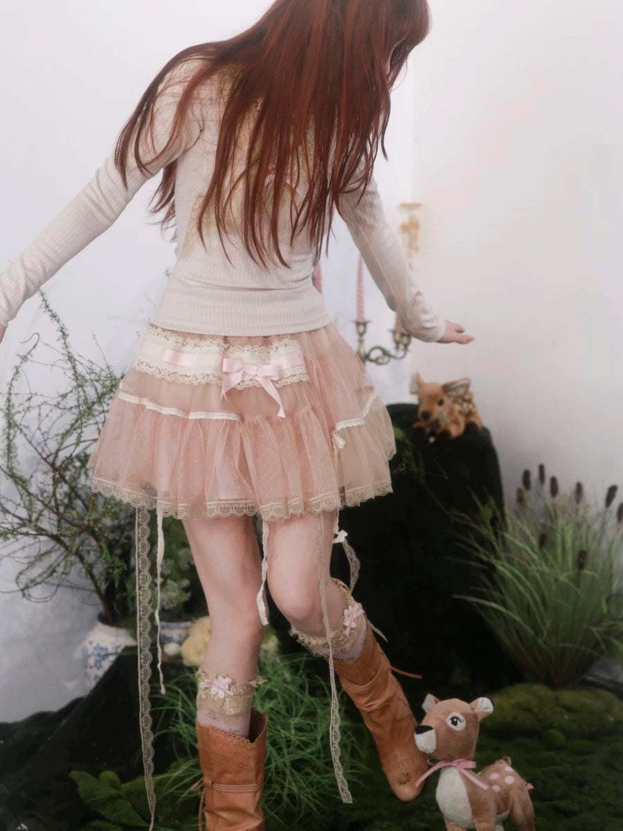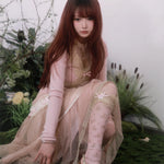 不規則にマラソンされたレースは、まだ編みかけられているように、未完成で夢見心地の雰囲気を醸し出し、フェアリーコアの幻想的な世界観とコケットコアの優雅さを融合させています。