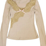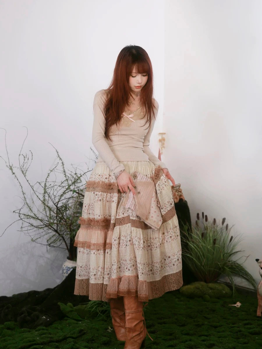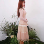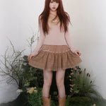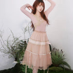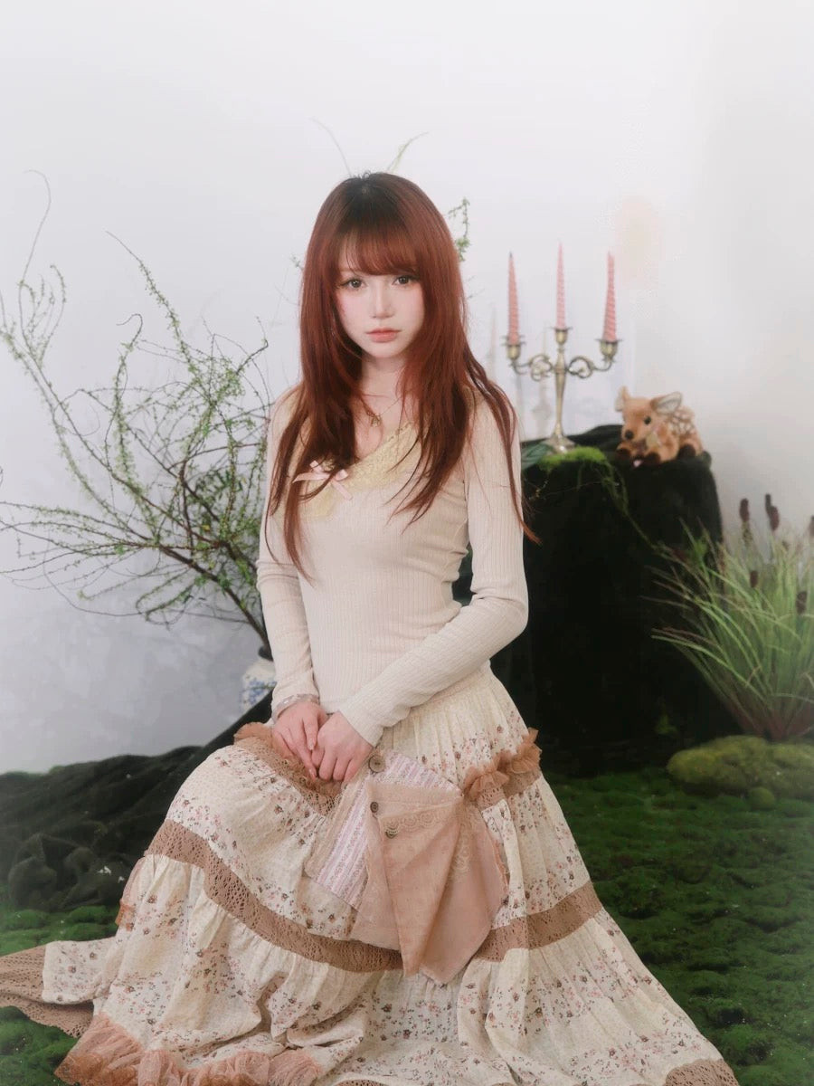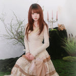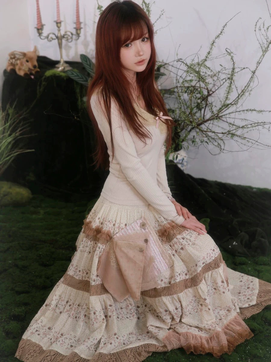 不規則にマラソンされたレースは、まだ編みかけられているように、未完成で夢見心地の雰囲気を醸し出し、フェアリーコアの幻想的な世界観とコケットコアの優雅さを融合させています。