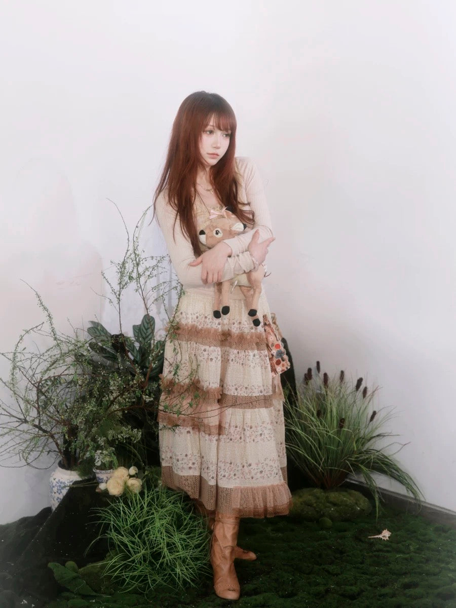 全体的に柔らかく、茶色がかったピンクの色合いで、フェアリーコアの美学にぴったりです。