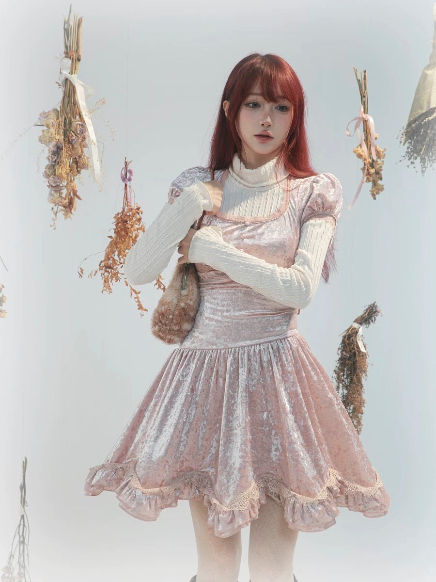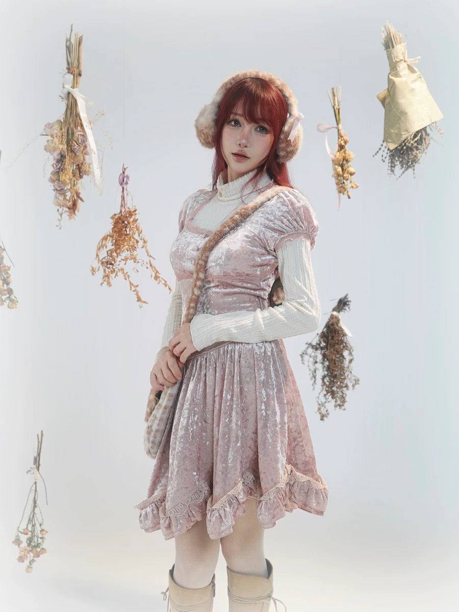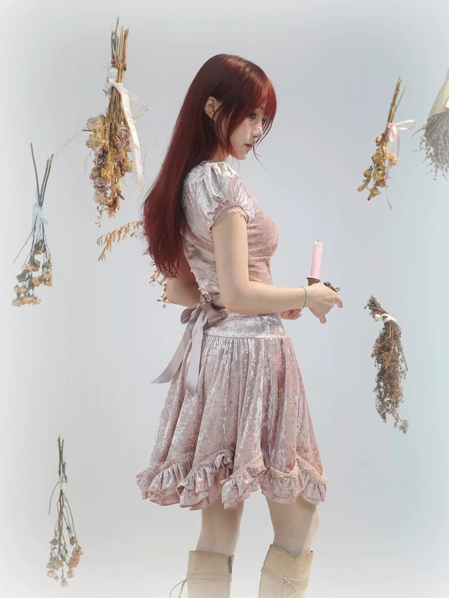 [ローズアイランド] ソフトピンクのフェアリースピリットベルベットプリンセスドレス
