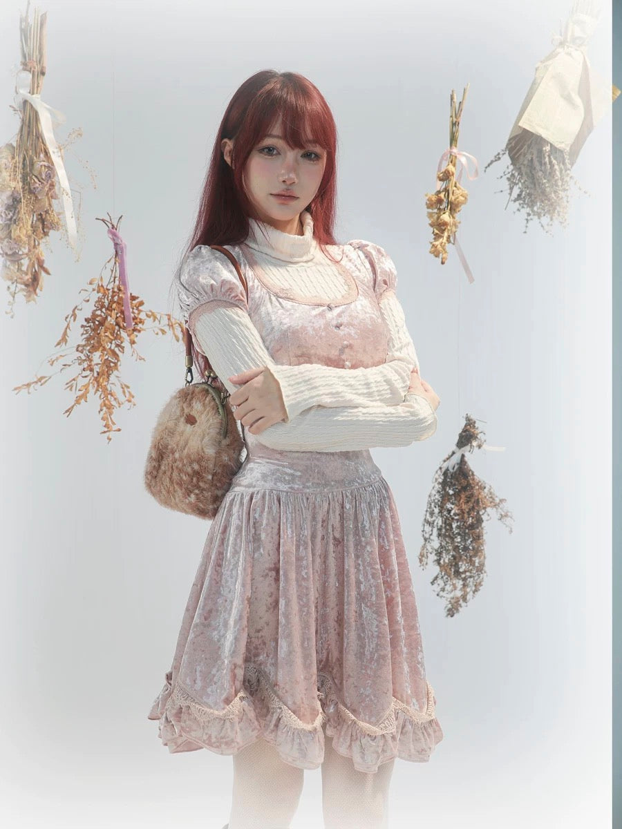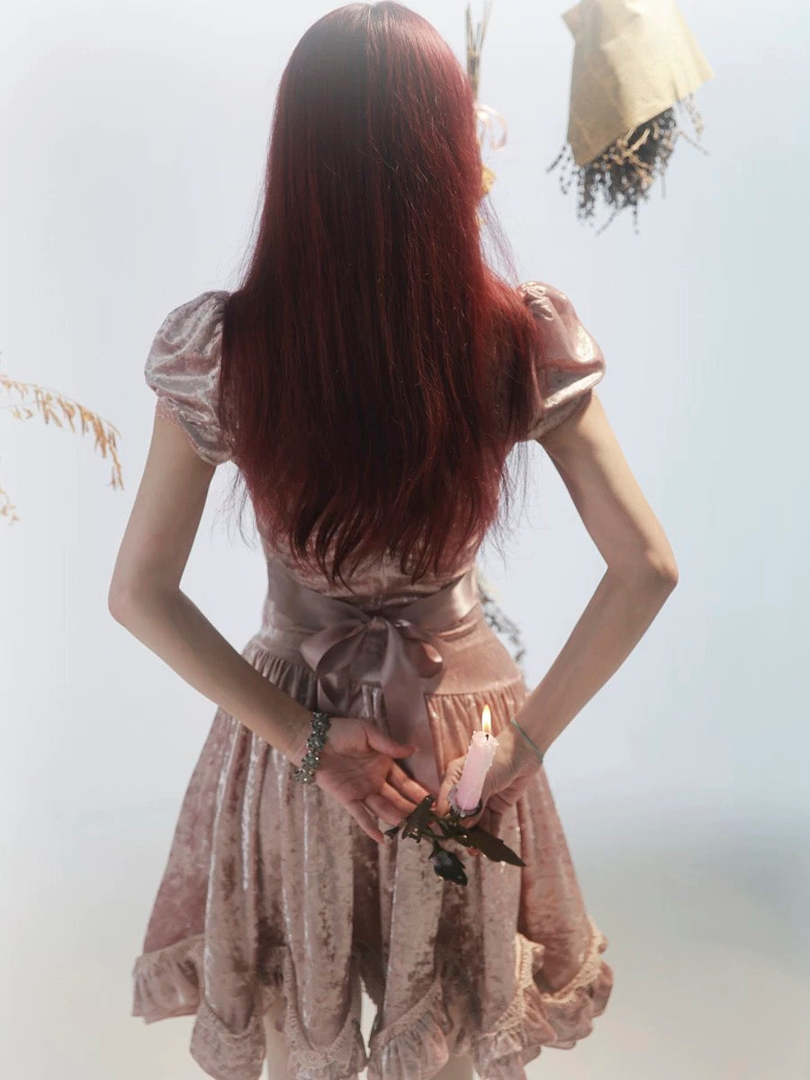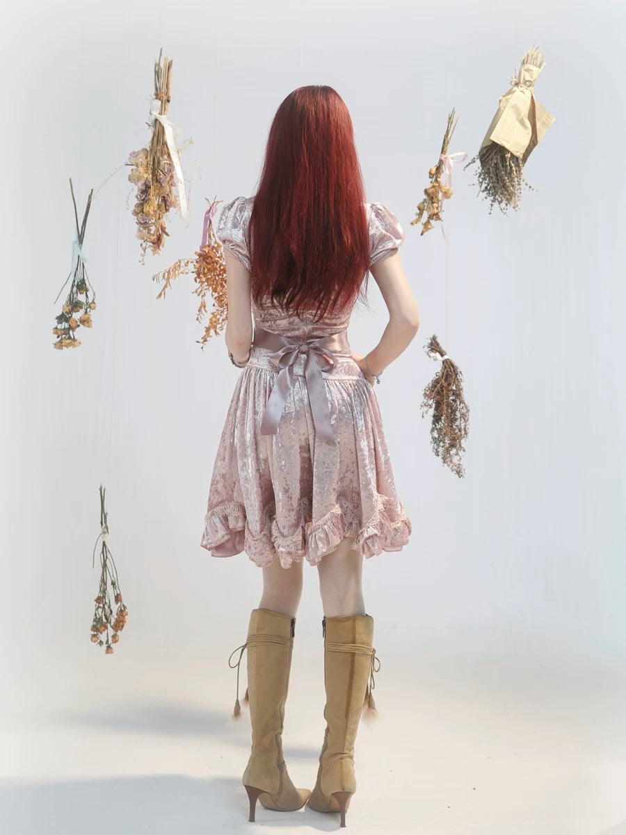 [ローズアイランド] ソフトピンクのフェアリースピリットベルベットプリンセスドレス