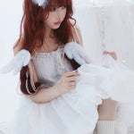 ミヤはレースとリボンに囲まれて、ちいさな部屋に住んでいます。