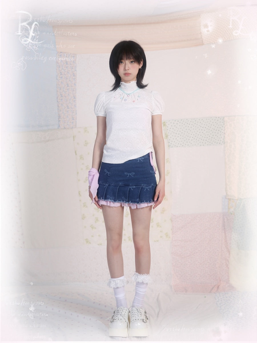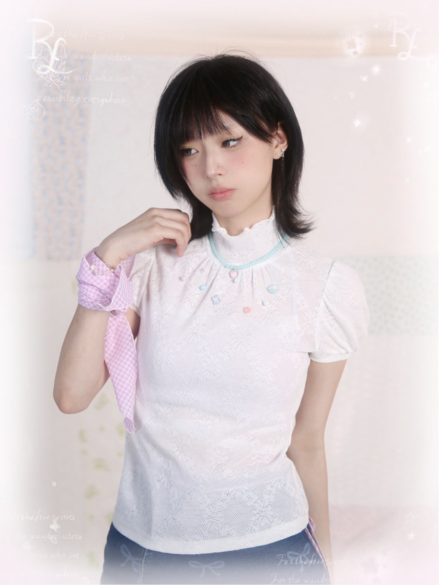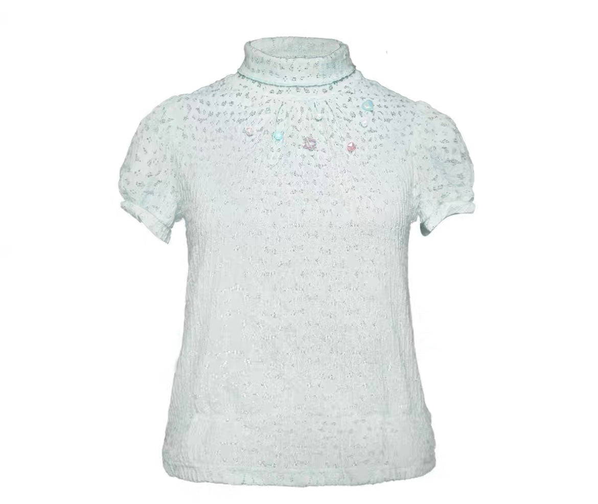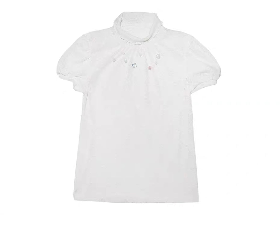 [ローズアイランド]ジェム​​ストーンエレガンスショートスリーブトップス